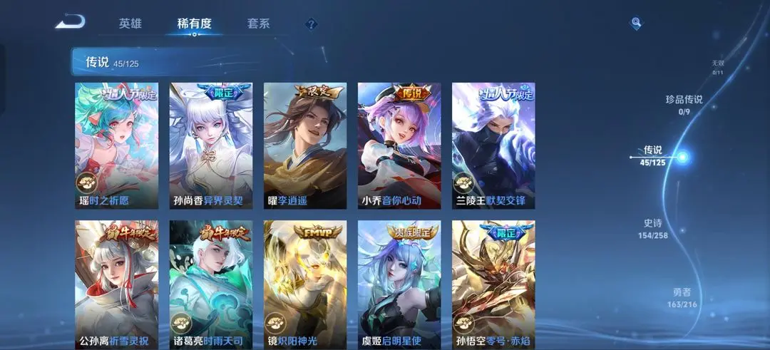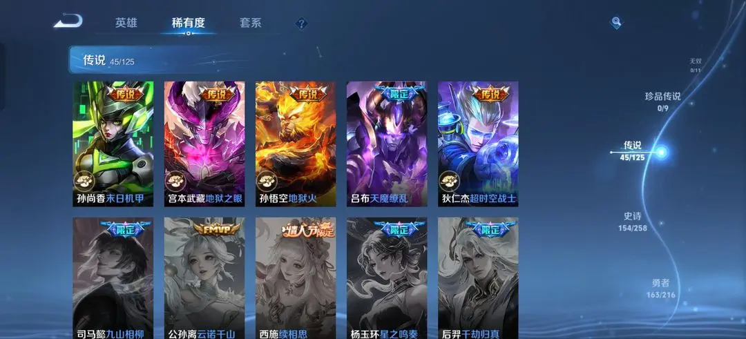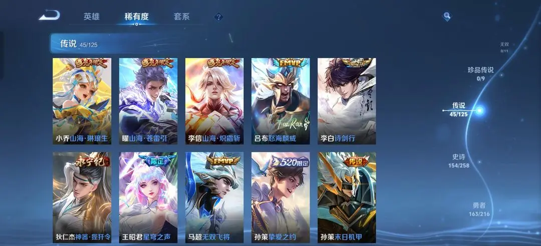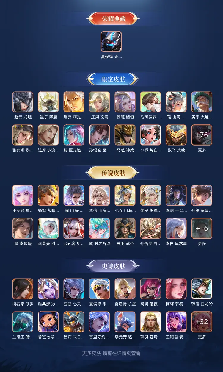 本游戏账号: V10用户,基础段位:最强王者,英雄多,皮肤多。典藏皮肤1个,感受典藏皮肤带来的优质体验快感,FMVP皮肤5个,尽情享受FMVP皮肤带来的主角光环, 私人所属英雄皮肤有:夏侯惇 无限飓风号诸葛亮 鹤羽星尊||诸葛亮 时雨天司||诸葛亮 武陵仙君||孙尚香 异界灵契||孙尚香 末日机甲||公孙离 祈雪灵祝||孙策 挚爱之约||孙策 末日机甲||上官婉儿 神器·万象笔||吕布 天魔缭乱||曜 山海·苍雷引||曜 李逍遥||宫本武藏 地狱之眼||李白 诗剑行||李白 凤求凰||狄仁杰 神器·狴犴令||狄仁杰 超时空战士||达摩 黄金狮子座||项羽 无限倾心||夏洛特 浮生妄||关羽 武圣||王昭君 星穹之声||兰陵王 默契交锋||花木兰 燃星之曲||艾琳 觅芳踪||孙悟空 齐天大圣||孙悟空 零号·赤焰||孙悟空 地狱火||张飞 百相守梦||虞姬 无限倾心||虞姬 启明星使||杨戬 永曜之星||干将莫邪 画中仙||小乔 音你心动||小乔 山海·琳琅生||瑶 时之祈愿||李
