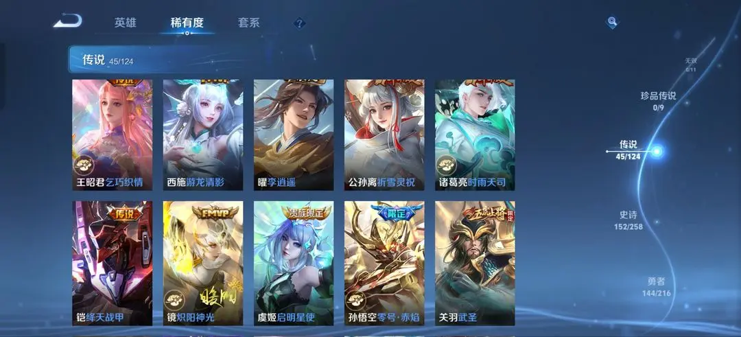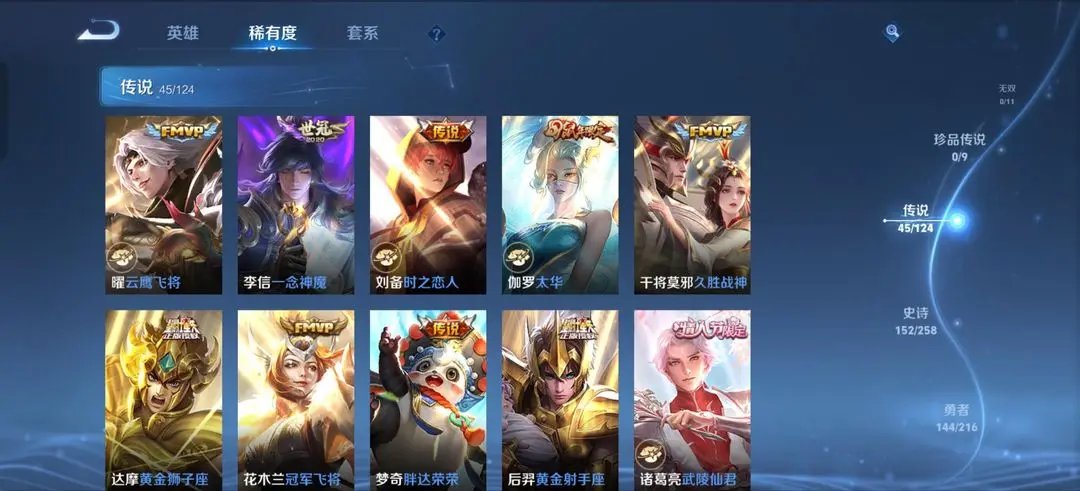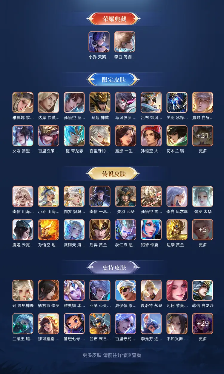 本游戏账号: V10用户,基础段位:最强王者,英雄多,皮肤多。典藏皮肤2个,感受典藏皮肤带来的优质体验快感,FMVP皮肤6个,尽情享受FMVP皮肤带来的主角光环, 私人所属英雄皮肤有:李白 鸣剑·曳影||小乔 天鹅之梦诸葛亮 鹤羽星尊||诸葛亮 武陵仙君||梦奇 胖达荣荣||孙尚香 异界灵契||鲁班七号 时之奇旅||宫本武藏 惊梅引||宫本武藏 地狱之眼||李白 凤求凰||狄仁杰 超时空战士||达摩 黄金狮子座||项羽 无限倾心||武则天 海洋之心||桑启 鸣野蒿||云缨 鹤归松栖||关羽 武圣||貂蝉 仲夏夜之梦||王昭君 乞巧织情||兰陵王 默契交锋||花木兰 燃星之曲||艾琳 觅芳踪||不知火舞 绯月行||孙悟空 齐天大圣||孙悟空 零号·赤焰||孙悟空 地狱火||后羿 黄金射手座||虞姬 无限倾心||虞姬 启明星使||虞姬 云霓雀翎||干将莫邪 画中仙||小乔 山海·琳琅生||李信 山海·炽霜斩||李信 一念神魔||伽罗 炽翼辉光||伽罗 太华,等等