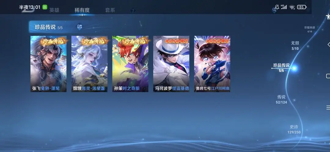 伽罗典藏✸无双耀✸无双韩信✸柯南✸祥瑞亨通✸幻光神枪✸蛇年妲己✸蛇年澜✸逐花归海✸战鼓燎原✸遇见神鼓