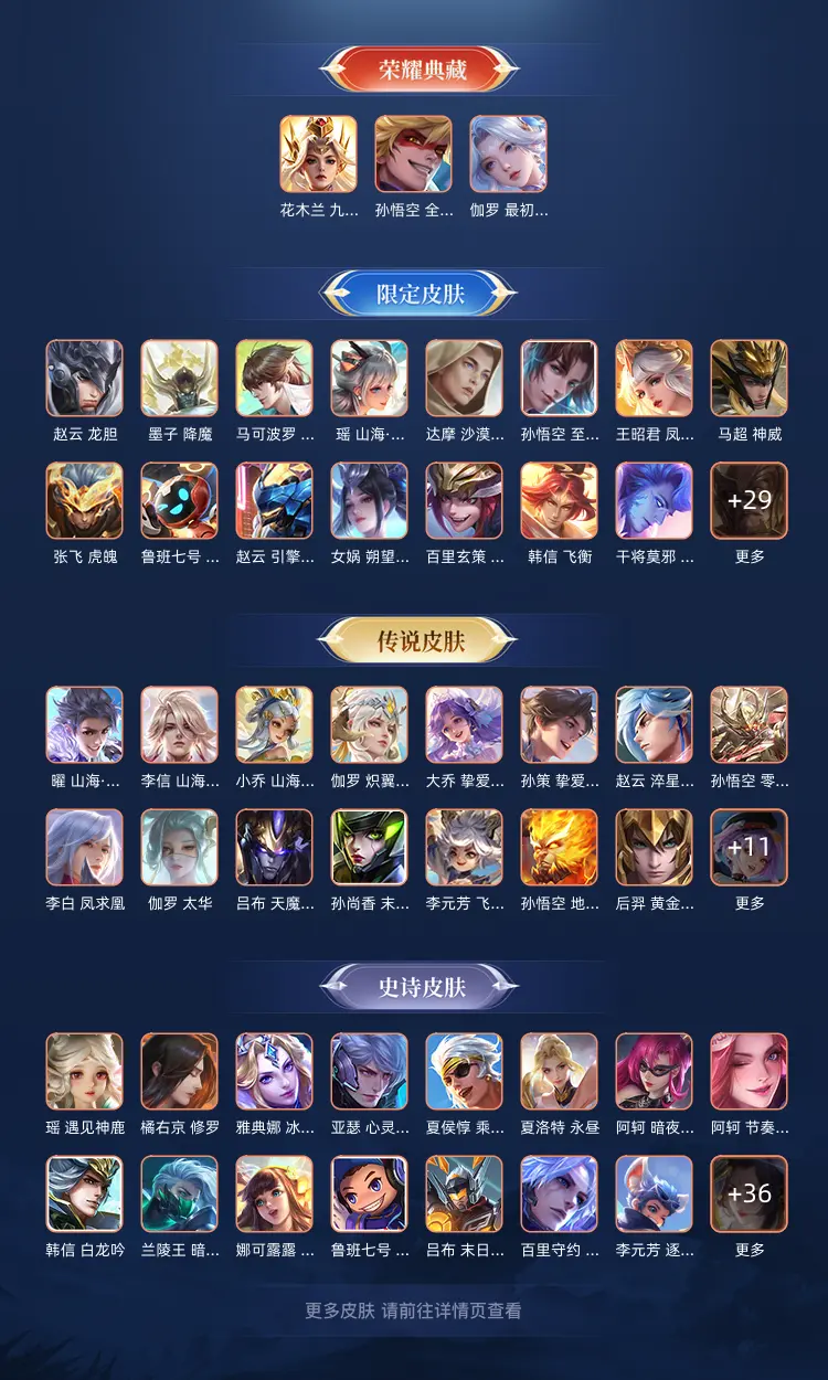 本游戏账号: V10用户,基础段位:最强王者,英雄多,皮肤多。典藏皮肤4个,感受典藏皮肤带来的优质体验快感,FMVP皮肤7个,尽情享受FMVP皮肤带来的主角光环, 私人所属英雄皮肤有:韩信 弑枪猎影||伽罗 最初的交响||孙悟空 全息碎影||花木兰 九霄神辉曜 山海·苍雷引||鲁班七号 江户川柯南||墨子 黄金天蝎座||小乔 音你心动||小乔 山海·琳琅生||吕布 天魔缭乱||吕布 遇见神鼓||妲己 愿照·众生和||伽罗 太华||伽罗 炽翼辉光||孙悟空 零号·赤焰||孙悟空 齐天大圣||孙悟空 地狱火||干将莫邪 画中仙||澜 愿照·九州拓||澜 电玩·雷克斯||李信 山海·炽霜斩||虞姬 启明星使||虞姬 无限倾心||花木兰 燃星之曲||典韦 战鼓燎原||百里守约 碎云||孙策 末日机甲||孙策 挚爱之约||孙策 乘龙·淬吴钩||宫本武藏 惊梅引||宫本武藏 地狱之眼||李白 凤求凰||狄仁杰 超时空战士||项羽 无限倾心||貂蝉 仲夏夜之梦||达摩 黄金狮子座||艾琳 觅芳