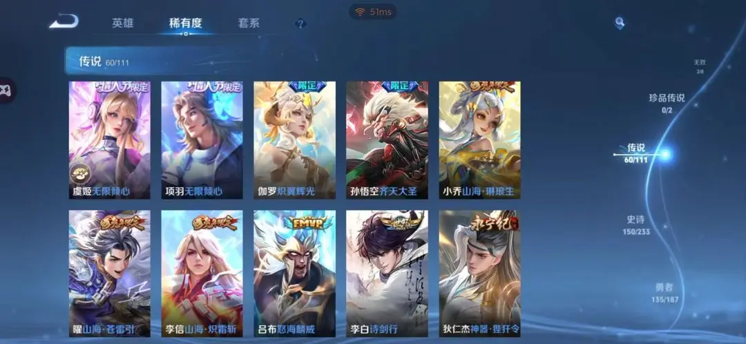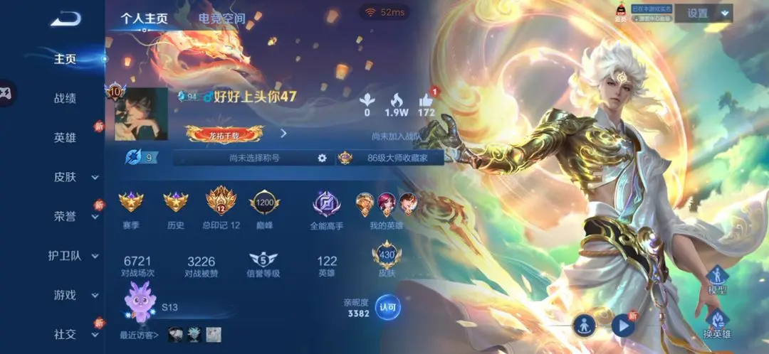 本游戏账号: V10用户,基础段位:最强王者,英雄多,皮肤多。典藏皮肤2个,感受典藏皮肤带来的优质体验快感,FMVP皮肤6个,尽情享受FMVP皮肤带来的主角光环, 私人所属英雄皮肤有:铠 银白咏叹调||夏侯惇 无限飓风号诸葛亮 鹤羽星尊||诸葛亮 武陵仙君||大乔 挚爱花嫁||铠 冥王哈迪斯||铠 绛天战甲||百里守约 碎云||梦奇 胖达荣荣||孙尚香 音你闪耀||孙尚香 异界灵契||鲁班七号 江户川柯南||鲁班七号 寅虎·瑞焰||鲁班七号 时之奇旅||孙策 乘龙·淬吴钩||孙策 挚爱之约||孙策 末日机甲||上官婉儿 妄想奇谈||上官婉儿 神器·万象笔||周瑜 音你心动||典韦 战鼓燎原||澜 电玩·雷克斯||宫本武藏 地狱之眼||狄仁杰 超时空战士||达摩 黄金狮子座||桑启 鸣野蒿||关羽 武圣||貂蝉 曦玄引||貂蝉 仲夏夜之梦||露娜 启示之音||王昭君 乞巧织情||王昭君 星穹之声||艾琳 觅芳踪||张良 黄金白羊座||孙悟空 零号·赤焰||孙悟空 地狱火||孙悟空