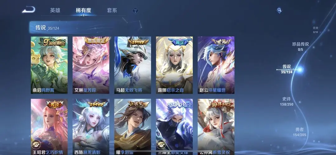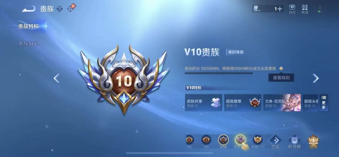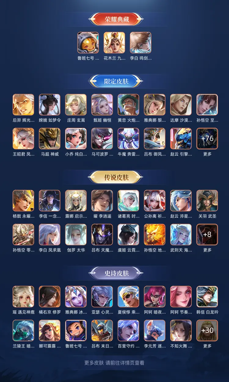 本游戏账号: V10用户,基础段位:至尊星耀IV,英雄多,皮肤多。典藏皮肤3个,感受典藏皮肤带来的优质体验快感,FMVP皮肤7个,尽情享受FMVP皮肤带来的主角光环, 私人所属英雄皮肤有:李白 鸣剑·曳影||花木兰 九霄神辉||鲁班七号 星空梦想孙悟空 零号·赤焰||孙悟空 地狱火||孙尚香 末日机甲||李白 凤求凰||伽罗 太华||公孙离 祈雪灵祝||铠 绛天战甲||曜 李逍遥||兰陵王 默契交锋||虞姬 云霓雀翎||虞姬 启明星使||宫本武藏 地狱之眼||赵云 淬星耀世||王昭君 乞巧织情||达摩 黄金狮子座||艾琳 觅芳踪||狄仁杰 超时空战士||露娜 启示之音||关羽 武圣||李信 一念神魔||貂蝉 仲夏夜之梦||诸葛亮 时雨天司||诸葛亮 武陵仙君||杨戬 永曜之星||武则天 海洋之心||吕布 天魔缭乱||桑启 鸣野蒿,等等