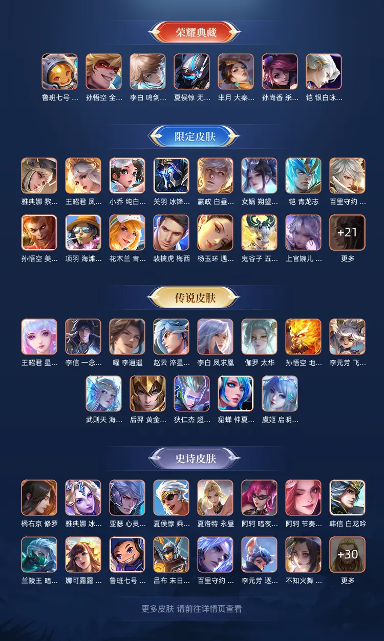 本游戏账号: V10用户,基础段位:最强王者,英雄多,皮肤多。典藏皮肤6个,感受典藏皮肤带来的优质体验快感, 私人所属英雄皮肤有:孙尚香 杀手不太冷||鲁班七号 星空梦想||芈月 大秦宣太后||夏侯惇 无限飓风号||李白 鸣剑·曳影||孙悟空 全息碎影大乔 时之奇旅||乘龙·问璇玑||乘龙·淬吴钩||落雪白狼||遇见神鼓||李逍遥||凤求凰||超时空战士||海洋之心||鸣野蒿||鹤归松栖||仲夏夜之梦||永恒水手月亮||星穹之声||觅芳踪||地狱火||黄金射手座||飞鸢探春||启明星使||淬星耀世||赵云 乘龙·铭钟鼎||李信 一念神魔||伽罗 太华,等等