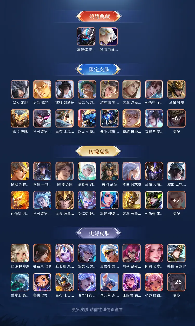 本游戏账号: V9用户,基础段位:最强王者,英雄多,皮肤多。典藏皮肤1个,感受典藏皮肤带来的优质体验快感,FMVP皮肤3个,尽情享受FMVP皮肤带来的主角光环, 私人所属英雄皮肤有:夏侯惇 无限飓风号诸葛亮 鹤羽星尊||诸葛亮 时雨天司||诸葛亮 武陵仙君||孙尚香 末日机甲||吕布 遇见神鼓||吕布 天魔缭乱||曜 李逍遥||宫本武藏 惊梅引||宫本武藏 地狱之眼||李白 凤求凰||马可波罗 深海之息||狄仁杰 超时空战士||达摩 黄金狮子座||关羽 武圣||貂蝉 仲夏夜之梦||王昭君 永恒水手月亮||王昭君 乞巧织情||兰陵王 影龙天霄||艾琳 觅芳踪||孙悟空 地狱火||后羿 黄金射手座||虞姬 启明星使||虞姬 云霓雀翎||杨戬 永曜之星||裴擒虎 寅虎·赤拳||李信 一念神魔,等等