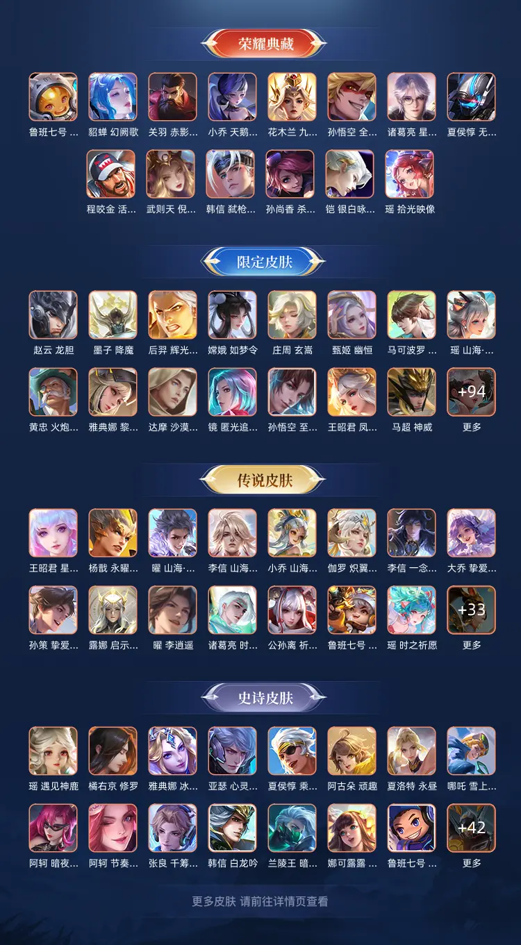 本游戏账号: V10用户,基础段位:至尊星耀IV,英雄多,皮肤多。典藏皮肤13个,感受典藏皮肤带来的优质体验快感,FMVP皮肤9个,尽情享受FMVP皮肤带来的主角光环, 私人所属英雄皮肤有:诸葛亮 星域神启||铠 银白咏叹调||孙尚香 杀手不太冷||鲁班七号 星空梦想||夏侯惇 无限飓风号||武则天 倪克斯神谕||关羽 赤影疾锋||貂蝉 幻阙歌||程咬金 活力突击||韩信 弑枪猎影||花木兰 九霄神辉||孙悟空 全息碎影||小乔 天鹅之梦,等等