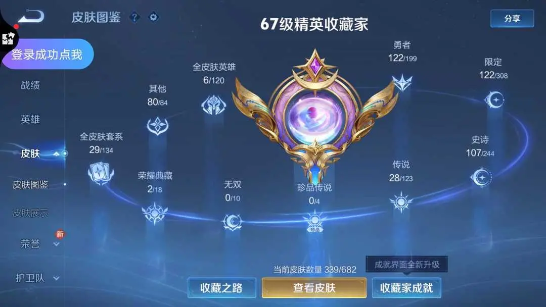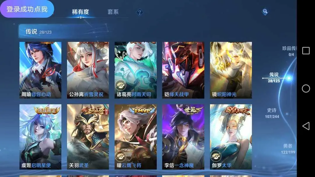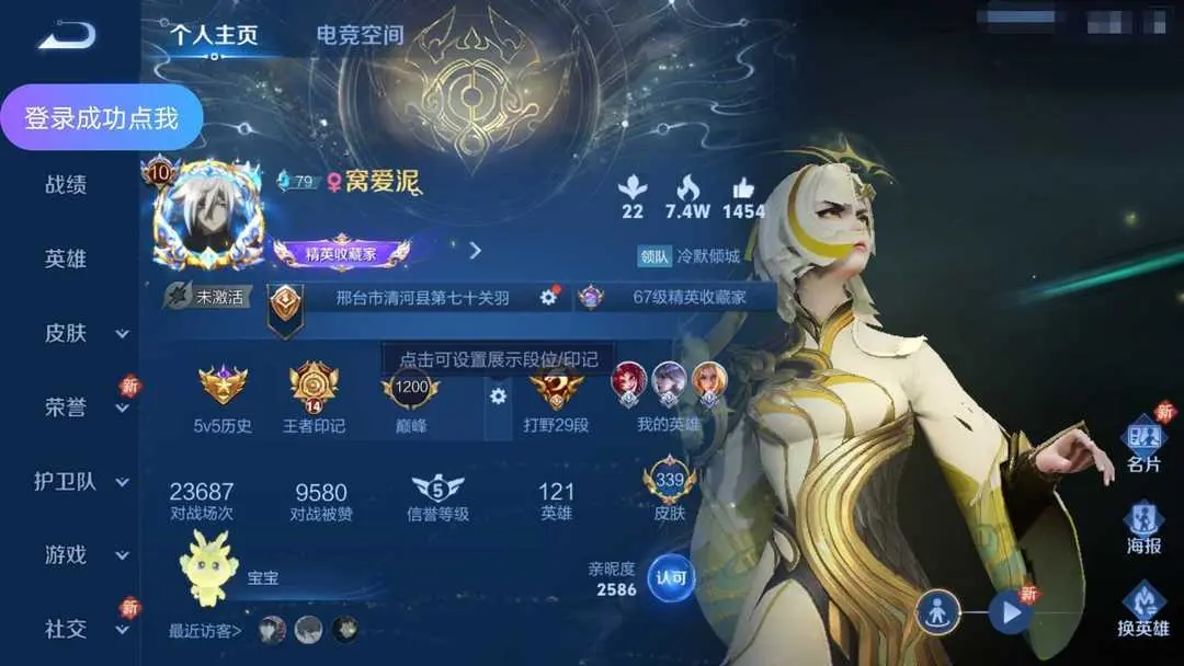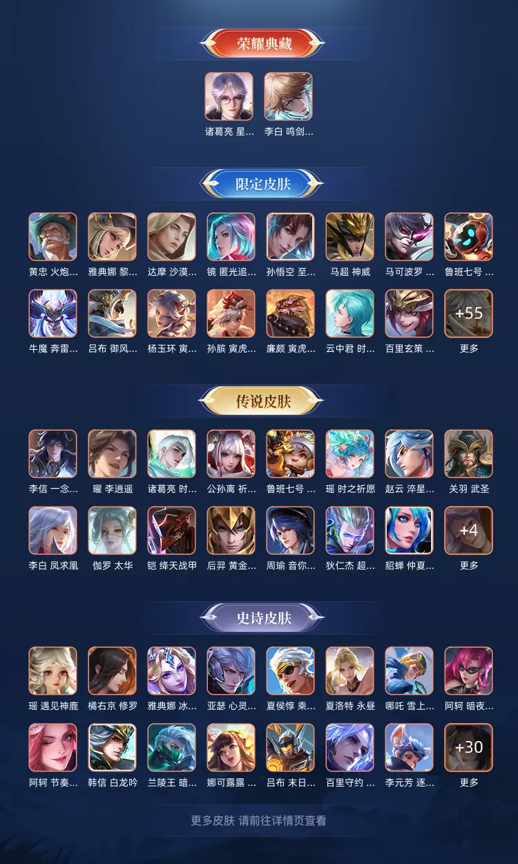 本游戏账号: V10用户,基础段位:最强王者,英雄多,皮肤多。典藏皮肤2个,感受典藏皮肤带来的优质体验快感,FMVP皮肤5个,尽情享受FMVP皮肤带来的主角光环, 私人所属英雄皮肤有:诸葛亮 星域神启||李白 鸣剑·曳影诸葛亮 时雨天司||铠 绛天战甲||公孙离 祈雪灵祝||孙尚香 异界灵契||鲁班七号 寅虎·瑞焰||周瑜 音你心动||曜 李逍遥||李白 凤求凰||狄仁杰 超时空战士||关羽 武圣||貂蝉 遇见胡旋||貂蝉 仲夏夜之梦||王昭君 乞巧织情||艾琳 觅芳踪||张良 黄金白羊座||后羿 黄金射手座||虞姬 启明星使||裴擒虎 寅虎·赤拳||赵云 淬星耀世||瑶 时之祈愿||李信 一念神魔||伽罗 太华,等等