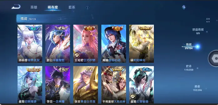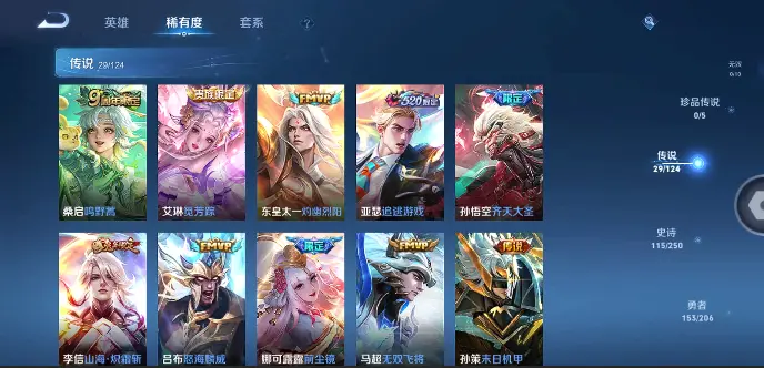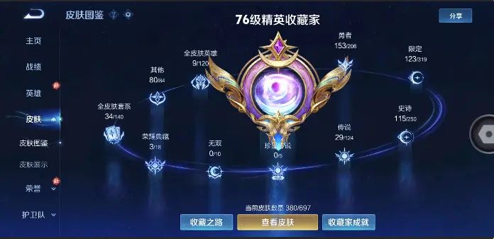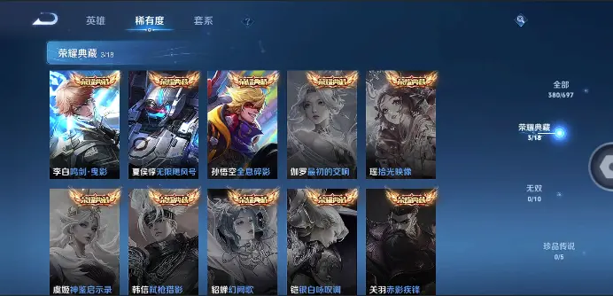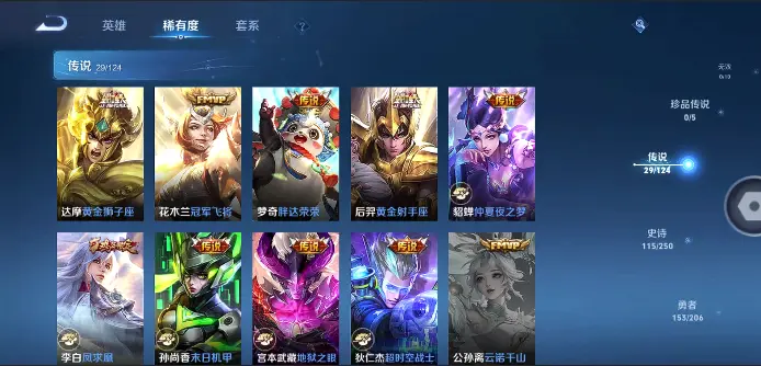 【贵族10,387皮肤】3典藏/27传说/5年限/1情限/108限定/2KPL