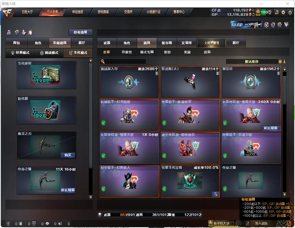 幻影猎人✨花神生化背包✨6盘6烈✨斯泰尔蝴蝶✨炼狱月皮✨减速雷满榴弹不退包✨可排位幻神无生化炽芒蝶刃