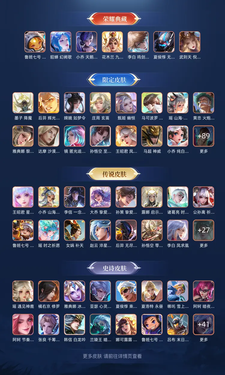 本游戏账号: V10用户,基础段位:最强王者,英雄多,皮肤多。典藏皮肤6个,感受典藏皮肤带来的优质体验快感,FMVP皮肤9个,尽情享受FMVP皮肤带来的主角光环, 私人所属英雄皮肤有:鲁班七号 星空梦想||夏侯惇 无限飓风号||李白 鸣剑·曳影||武则天 倪克斯神谕||貂蝉 幻阙歌||小乔 天鹅之梦诸葛亮 时雨天司||诸葛亮 武陵仙君||大乔 时之奇旅||大乔 挚爱花嫁||铠 绛天战甲||梦奇 胖达荣荣||公孙离 记忆之芯||公孙离 祈雪灵祝||孙尚香 乘龙·问璇玑||孙尚香 音你闪耀||孙尚香 异界灵契||孙尚香 末日机甲||鲁班七号 寅虎·瑞焰||孙策 乘龙·淬吴钩||孙策 挚爱之约||孙策 末日机甲||上官婉儿 妄想奇谈||上官婉儿 神器·万象笔||马超 琥珀纪元||吕布 天魔缭乱||周瑜 音你心动||澜 电玩·雷克斯||宫本武藏 地狱之眼||李白 诗剑行||李白 凤求凰||狄仁杰 超时空战士||达摩 黄金狮子座||武则天 海洋之心||桑启 鸣野蒿||夏洛特 浮生妄||貂蝉