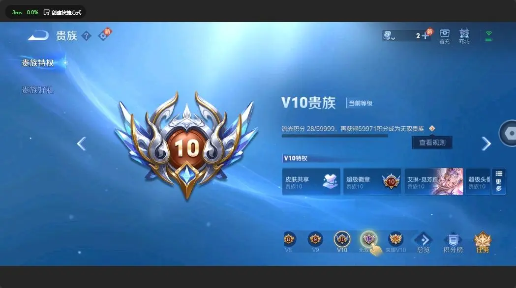 本游戏账号: V10用户,基础段位:永恒钻石I,英雄多,皮肤多。典藏皮肤8个,感受典藏皮肤带来的优质体验快感,FMVP皮肤6个,尽情享受FMVP皮肤带来的主角光环, 私人所属英雄皮肤有:孙尚香 杀手不太冷||鲁班七号 星空梦想||芈月 大秦宣太后||夏侯惇 无限飓风号||李白 鸣剑·曳影||武则天 倪克斯神谕||孙悟空 全息碎影||小乔 天鹅之梦诸葛亮 时雨天司||诸葛亮 武陵仙君||铠 绛天战甲||梦奇 胖达荣荣||孙尚香 异界灵契||孙尚香 末日机甲||公孙离 祈雪灵祝||鲁班七号 寅虎·瑞焰||孙策 末日机甲||吕布 天魔缭乱||周瑜 音你心动||曜 李逍遥||宫本武藏 地狱之眼||李白 凤求凰||狄仁杰 超时空战士||达摩 黄金狮子座||武则天 海洋之心||关羽 武圣||貂蝉 遇见胡旋||貂蝉 仲夏夜之梦||王昭君 乞巧织情||兰陵王 默契交锋||艾琳 觅芳踪||张良 黄金白羊座||孙悟空 零号·赤焰||孙悟空 地狱火||后羿 黄金射手座||李元芳 飞鸢探春||虞姬 启明