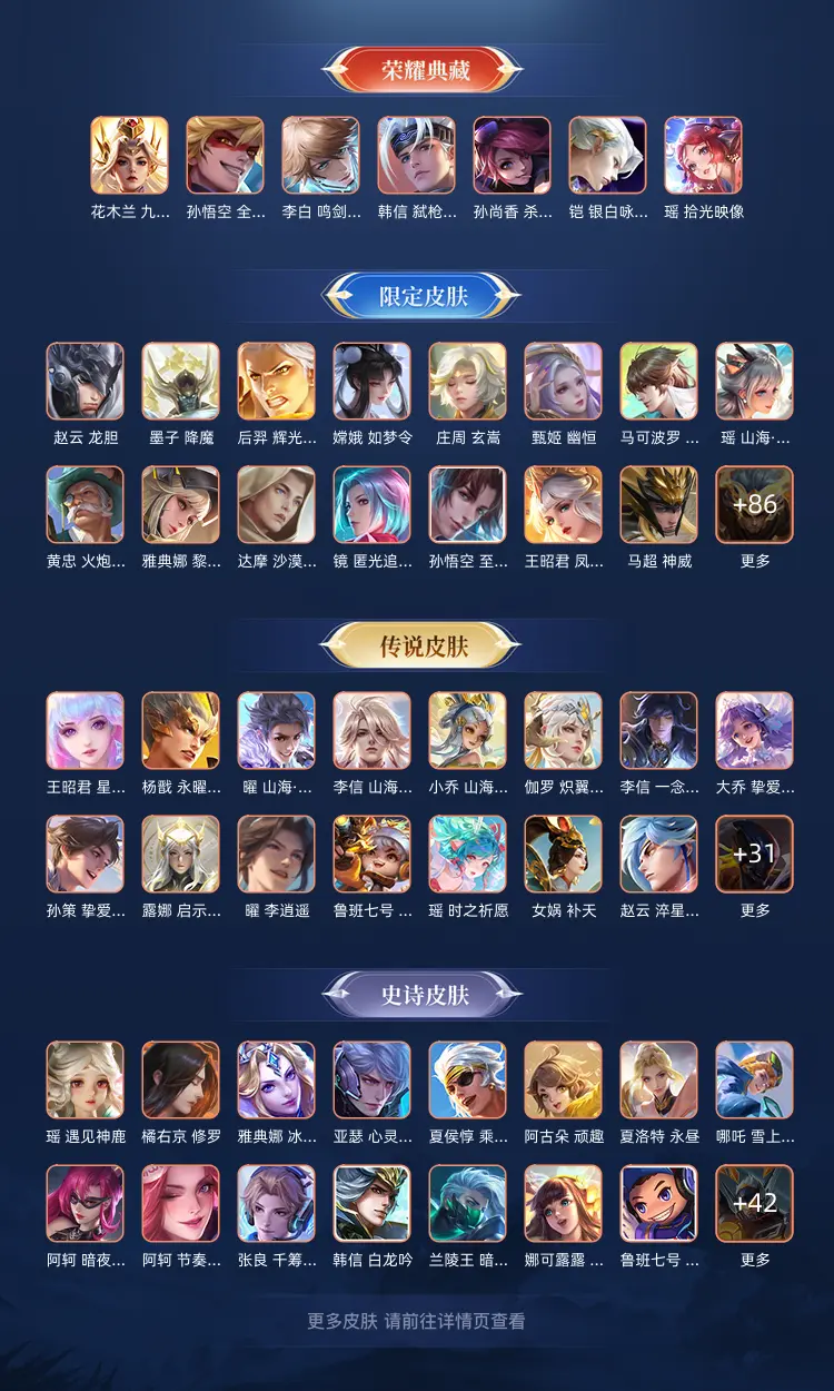 本游戏账号: V10无双贵族用户,基础段位:最强王者,英雄多,皮肤多。典藏皮肤7个,感受典藏皮肤带来的优质体验快感,FMVP皮肤10个,尽情享受FMVP皮肤带来的主角光环, 私人所属英雄皮肤有:铠 银白咏叹调||孙尚香 杀手不太冷||李白 鸣剑·曳影||韩信 弑枪猎影||花木兰 九霄神辉||孙悟空 全息碎影||瑶 拾光映像诸葛亮 鹤羽星尊||诸葛亮 武陵仙君||大乔 时之奇旅||大乔 挚爱花嫁||铠 冥王哈迪斯||铠 绛天战甲||百里守约 碎云||梦奇 胖达荣荣||孙尚香 异界灵契||孙尚香 末日机甲||公孙离 记忆之芯||鲁班七号 寅虎·瑞焰||庄周 牧神诗旅||孙策 挚爱之约||孙策 末日机甲||上官婉儿 神器·万象笔||周瑜 音你心动||曜 山海·苍雷引||曜 李逍遥||澜 电