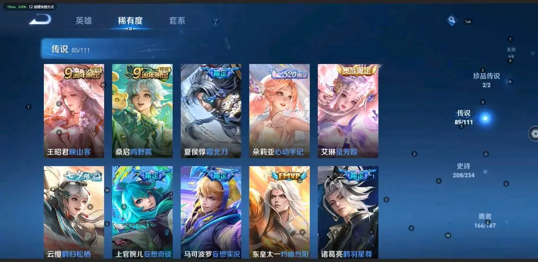 本游戏账号: V10用户,基础段位:最强王者,英雄多,皮肤多。典藏皮肤10个,感受典藏皮肤带来的优质体验快感,FMVP皮肤9个,尽情享受FMVP皮肤带来的主角光环, 私人所属英雄皮肤有:诸葛亮 星域神启||鲁班七号 星空梦想||芈月 大秦宣太后||夏侯惇 无限飓风号||李白 鸣剑·曳影||貂蝉 幻阙歌||韩信 弑枪猎影||花木兰 九霄神辉||孙悟空 全息碎影||瑶 拾光映像,等等