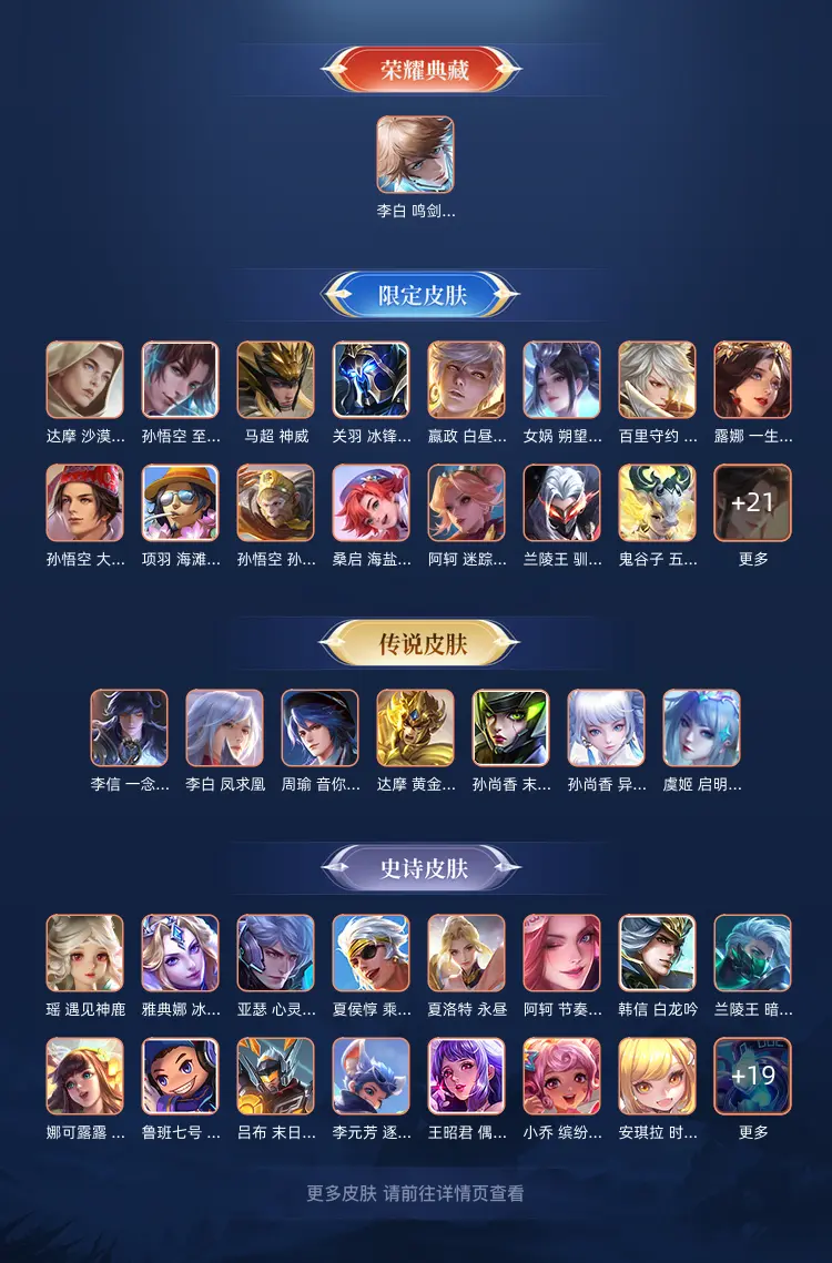 本游戏账号: ,英雄多,皮肤多。典藏皮肤1个,感受典藏皮肤带来的优质体验快感,FMVP皮肤4个,尽情享受FMVP皮肤带来的主角光环, 私人所属英雄皮肤有:李白 鸣剑·曳影虞姬 启明星使||孙策 乘龙·淬吴钩||周瑜 音你心动||达摩 黄金狮子座||李信 一念神魔||孙尚香 末日机甲||孙尚香 异界灵契||李白 凤求凰,等等