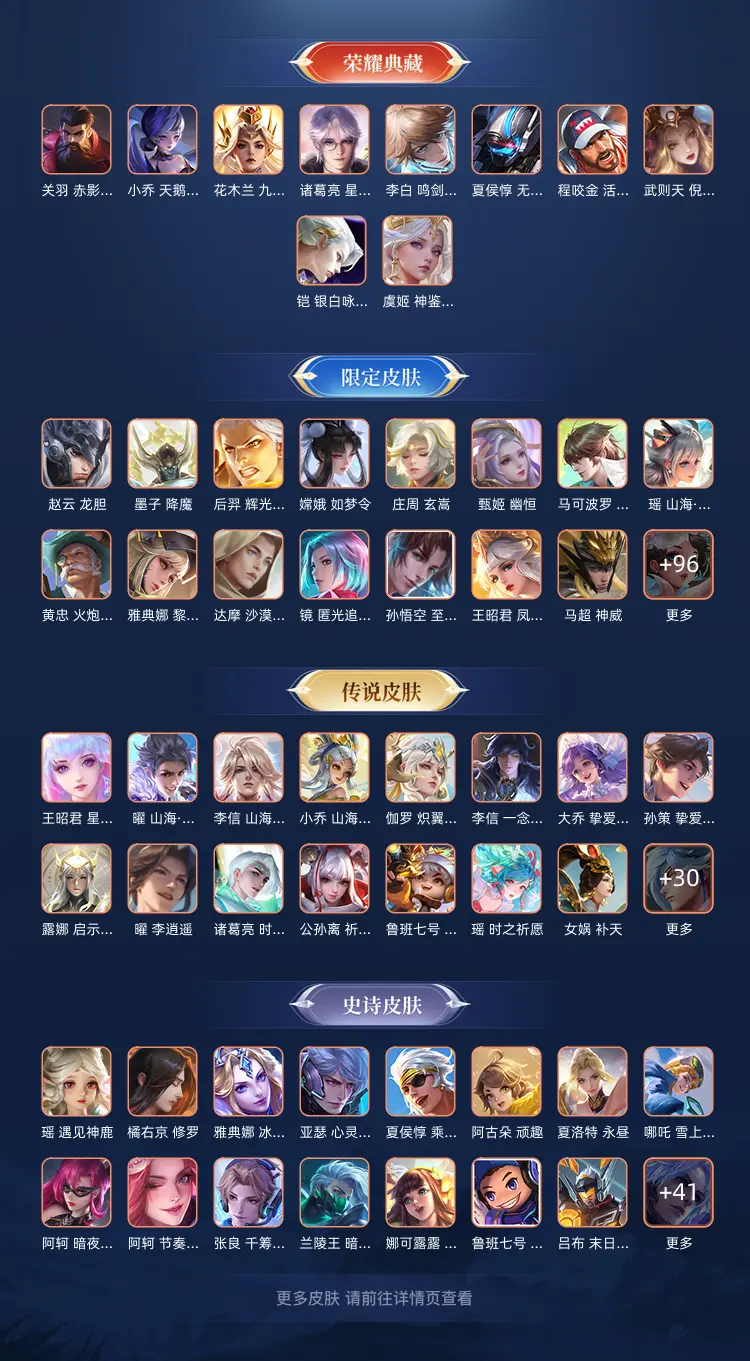 本游戏账号: V10无双贵族用户,基础段位:永恒钻石II,英雄多,皮肤多。典藏皮肤9个,感受典藏皮肤带来的优质体验快感,FMVP皮肤7个,尽情享受FMVP皮肤带来的主角光环, 私人所属英雄皮肤有:诸葛亮 星域神启||铠 银白咏叹调||夏侯惇 无限飓风号||武则天 倪克斯神谕||关羽 赤影疾锋||程咬金 活力突击||花木兰 九霄神辉||虞姬 神鉴启示录||小乔 天鹅之梦,等等