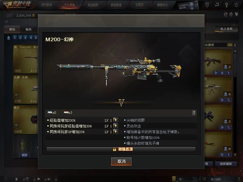 传奇3❤M200-幻神+4副武器❤四防灵狐经理❤QBZ青龙千变云龙扇
