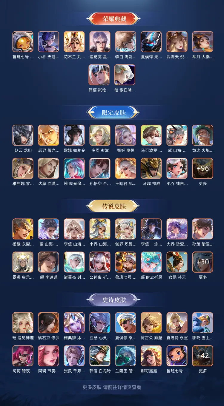 本游戏账号: V10用户,基础段位:至尊星耀V,英雄多,皮肤多。典藏皮肤10个,感受典藏皮肤带来的优质体验快感,FMVP皮肤8个,尽情享受FMVP皮肤带来的主角光环, 私人所属英雄皮肤有:诸葛亮 星域神启||铠 银白咏叹调||鲁班七号 星空梦想||芈月 大秦宣太后||夏侯惇 无限飓风号||李白 鸣剑·曳影||武则天 倪克斯神谕||韩信 弑枪猎影||花木兰 九霄神辉||小乔 天鹅之梦,等等