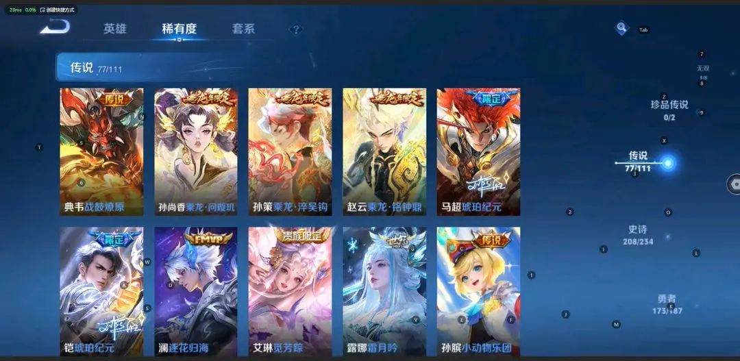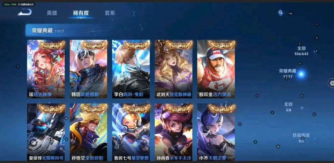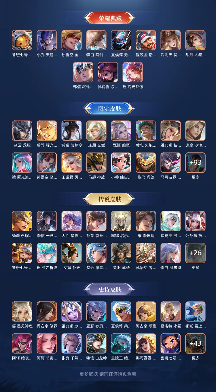 本游戏账号: V10无双贵族用户,基础段位:最强王者,英雄多,皮肤多。典藏皮肤11个,感受典藏皮肤带来的优质体验快感,FMVP皮肤9个,尽情享受FMVP皮肤带来的主角光环, 私人所属英雄皮肤有:孙尚香 杀手不太冷||鲁班七号 星空梦想||芈月 大秦宣太后||夏侯惇 无限飓风号||李白 鸣剑·曳影||武则天 倪克斯神谕||程咬金 活力突击||韩信 弑枪猎影||孙悟空 全息碎影||小乔 天鹅之梦||瑶 拾光映像,等等