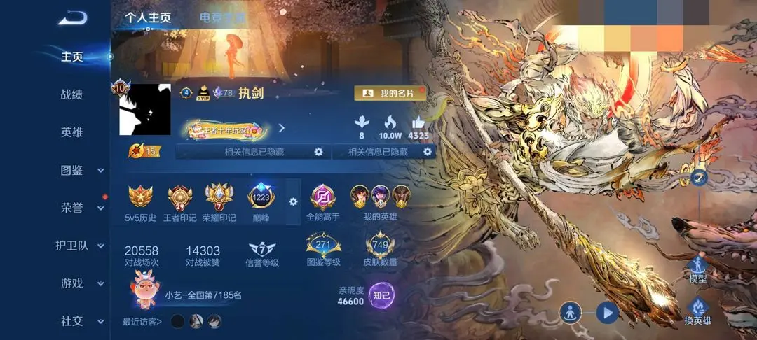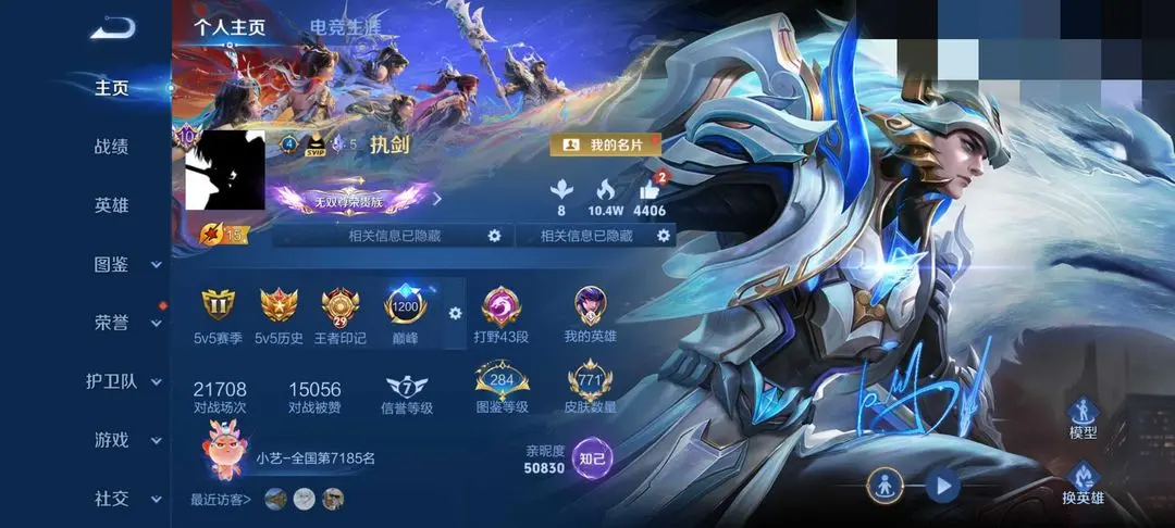 本游戏账号: V10荣耀贵族用户,基础段位:永恒钻石I,英雄多,皮肤多。典藏皮肤17个,感受典藏皮肤带来的优质体验快感,FMVP皮肤10个,尽情享受FMVP皮肤带来的主角光环, 私人所属英雄皮肤有:瑶 拾光映像||虞姬 神鉴启示录||程咬金 活力突击||韩信 弑枪猎影||关羽 赤影疾锋||芈月 大秦宣太后||诸葛亮 星域神启||孙悟空 全息碎影||铠 银白咏叹调||花木兰 九霄神辉||武则天 倪克斯神谕||鲁班七号 星空梦想||貂蝉 幻阙歌||小乔 天鹅之梦||夏侯惇 无限飓风号||李白 鸣剑·曳影||孙尚香 杀手不太冷,等等