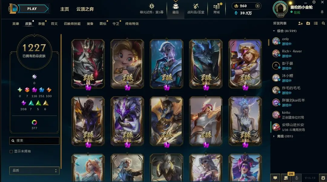 | 角色: 盖伦的小金轮#33909 | 等级: 1433级 华贵铂金IV |