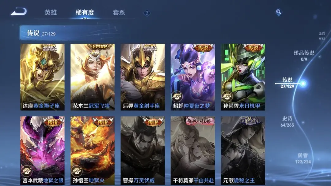 191皮肤-287武则天 凤求凰 大圣娶亲 武陵仙君 启明星使 永曜之星 后羿如梦令 天狼狩猎者 天狼征服者 逐梦之光 逐梦之翼 青龙志 烈魂 冰霜恋舞曲 辉光之辰 青春决赛季 凤凰于飞 飞衡 岱宗 幽恒 魔法小厨娘 引擎之心 蓝屏警告 梁祝 苍穹之光 龙骑士 未来纪元 冠军飞将 云霓雀翎 超时空战士 时之恋人男 仲夏夜之梦 海洋之心 地狱之眼 原初探秘者 李小龙 水晶猎龙者 猫狗日记男 地狱岩魂 特工魅影 曙光守护者 黄金分割率 嘻哈天王 舞动绿茵 修罗 晚萤 白龙吟 紫霞仙子 功夫厨神 圣诞恋歌 狮舞东方 幽灵船长 乘风破浪 圣诞狂欢 末日机甲男 星夜王子 时之恋人女 暗夜贵公子 偶像歌手 星空之诺 朔望之晖 神迹守卫 德古拉伯爵 赤莲之焰 银河之约 死神来了 冰冠公主 冰雪圆舞曲 凯尔特女王 狰 饕餮 烛龙 重明 穷奇 御狮 御霄 御旌 御銮 朔风刀 混沌棋 疑决卦 醍醐杖 万华元夜 拳王 霸王丸 敏锐之力 丁香结 科学大爆炸