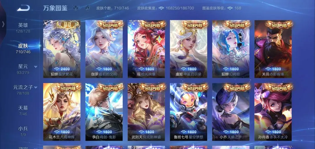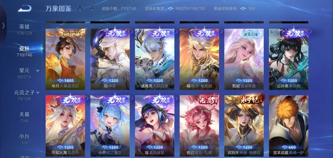 【无禁言】满皮8国服大国西施蔡文姬奕星❤️小国瑶小乔干将花木兰小明❤️凯无双神罪❤️74段中65段游