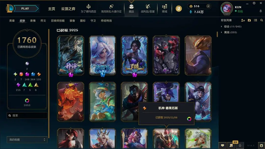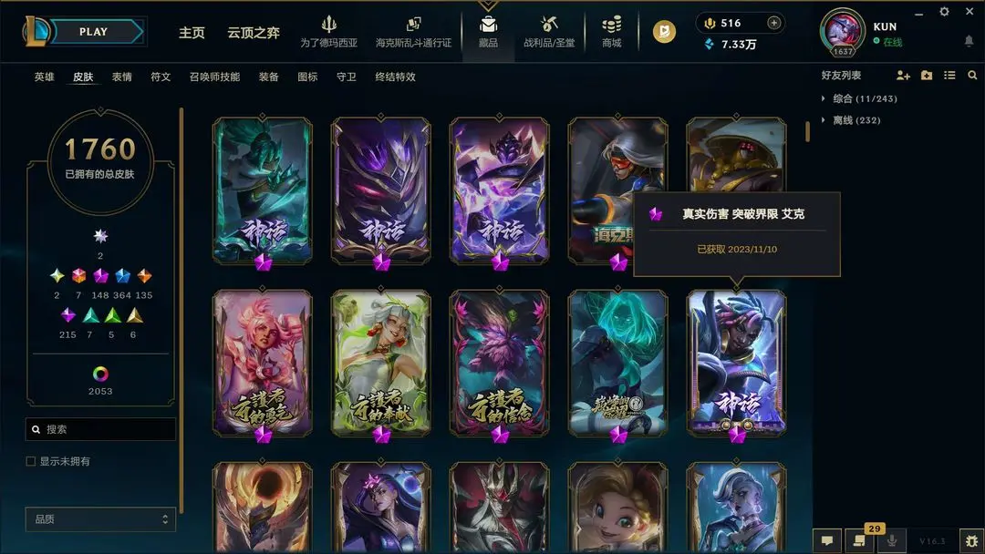 【1760原皮】王佛耶戈.uzi名人堂签名卡莎.云顶至臻阿狸格温.全年限全至臻.破碎者金克丝