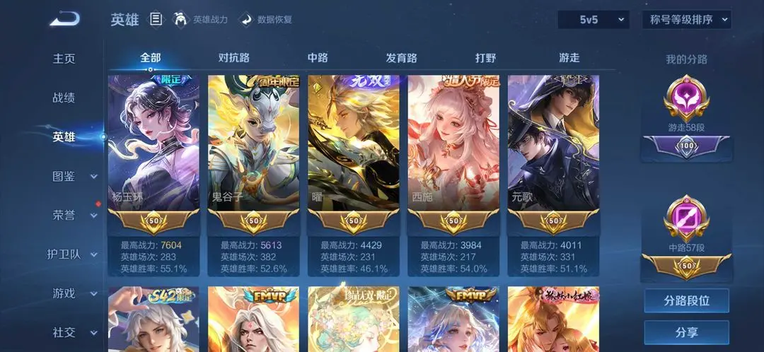 高危禁排位只能觉醒乱斗 极品女号无相♐5大国服瑶 武则天婉儿安琪拉孙膑中路55+游走55排名灵宝⚡