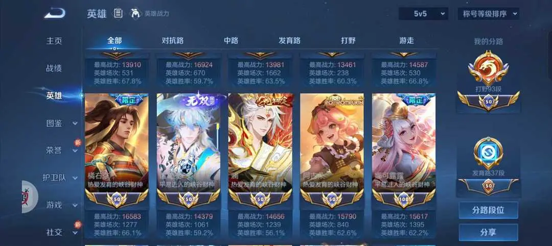 【无禁言】93段打野号✨大国标云中君玄策赵云✨小国8个澜露露诸葛橘子阿古朵孙膑...✨铠-神罪