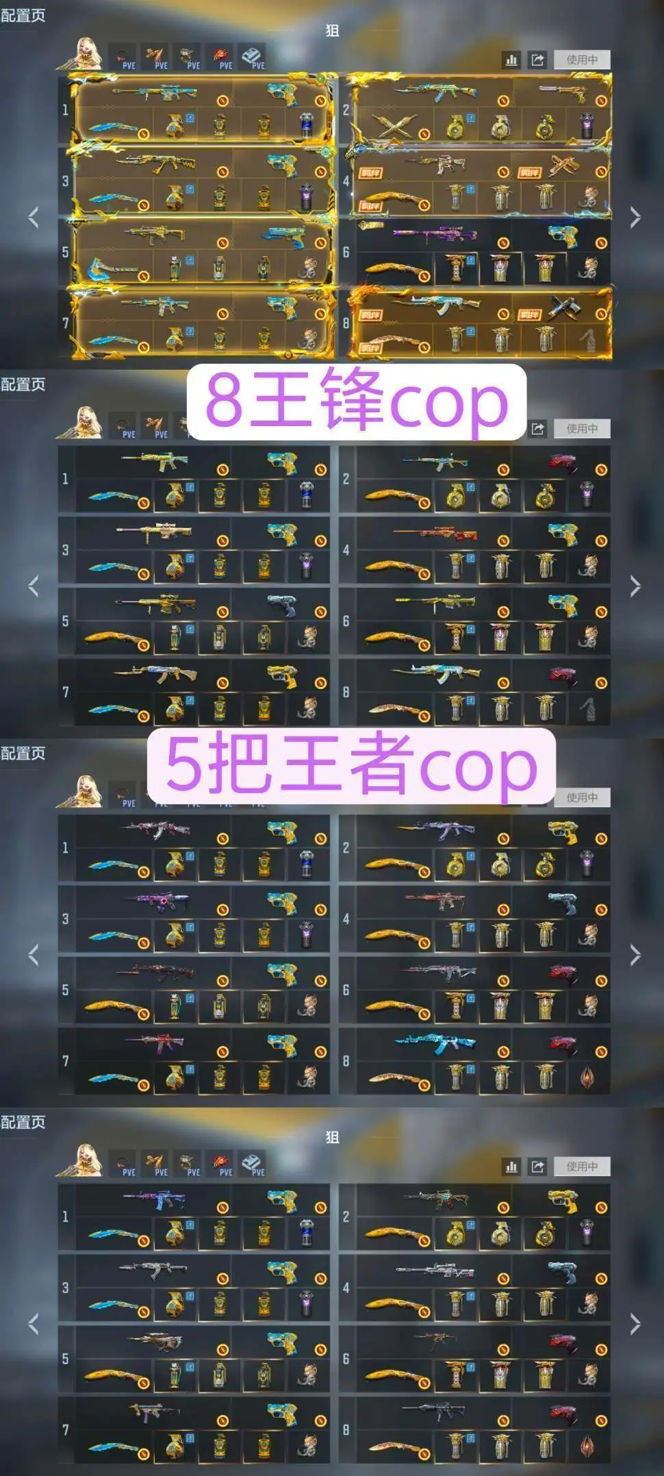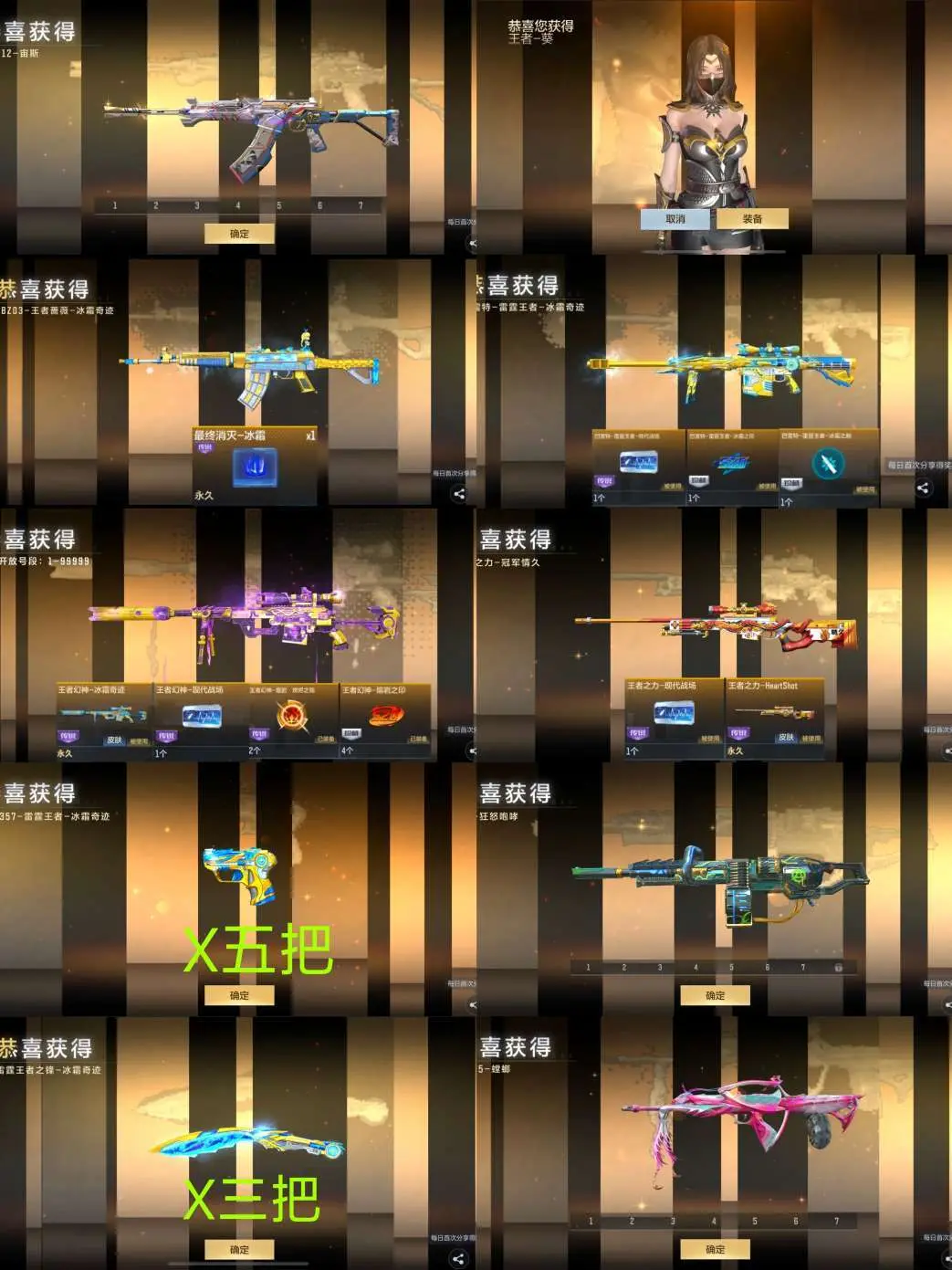 主流王者武器有【王力】【王翎】【王者蔷薇】【雷霆m4】【雷霆ak】【雷霆狙】【王腾】【王魄】【王心】【王影】【王怒】【王擎】【王光】【王幻】【王蝶】【王狱】【王者cop✘4】【王峰✘4】【雷霆王峰✘3】