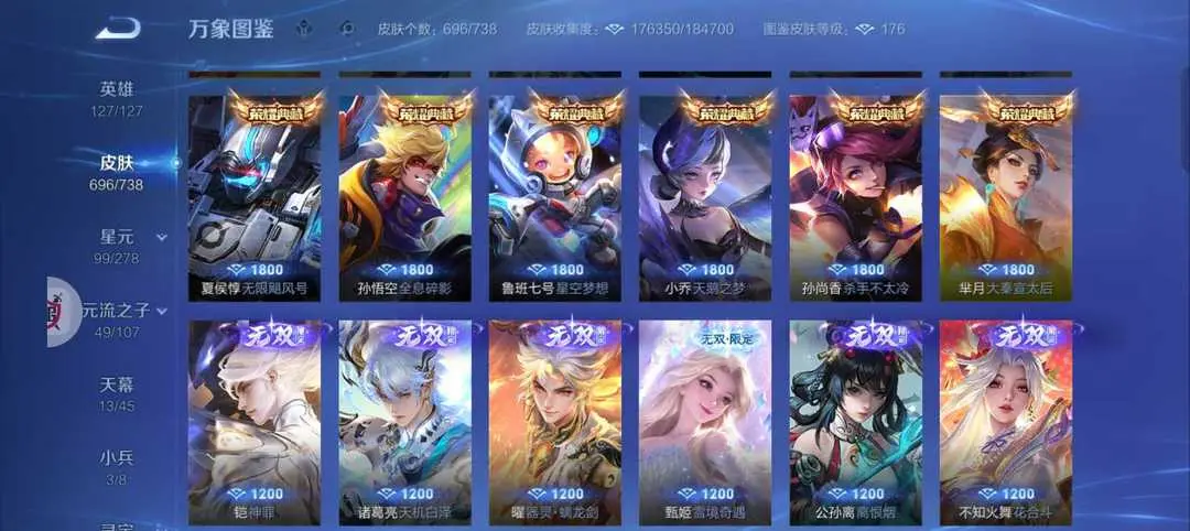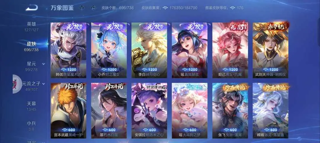 马年限定墨染无双全齐❤️6国服大国瑶大乔王昭君❤️小国孙膑蔡文姬太乙❤️79段游走❤️顶级女号