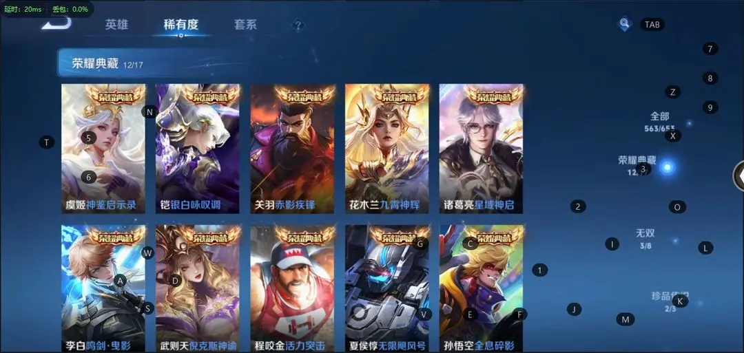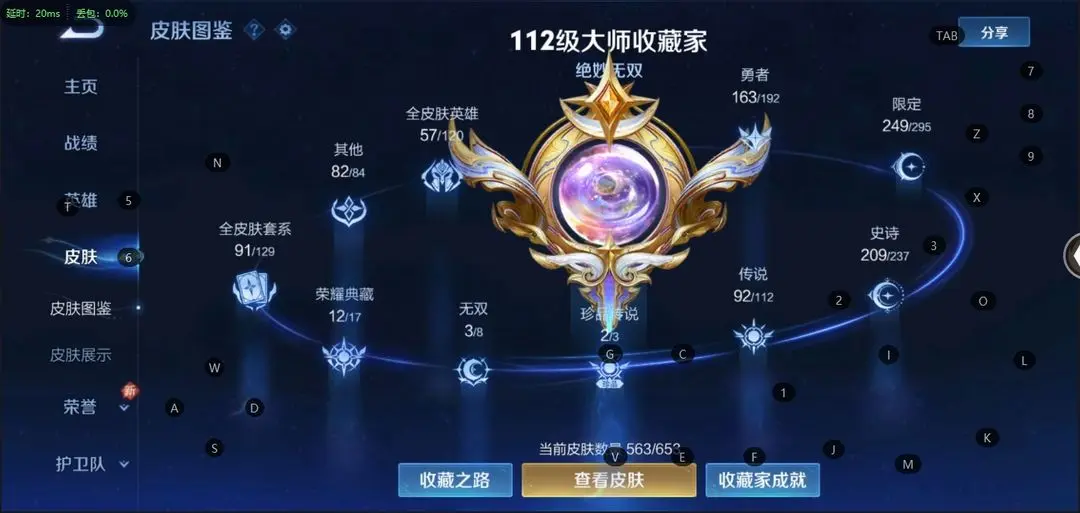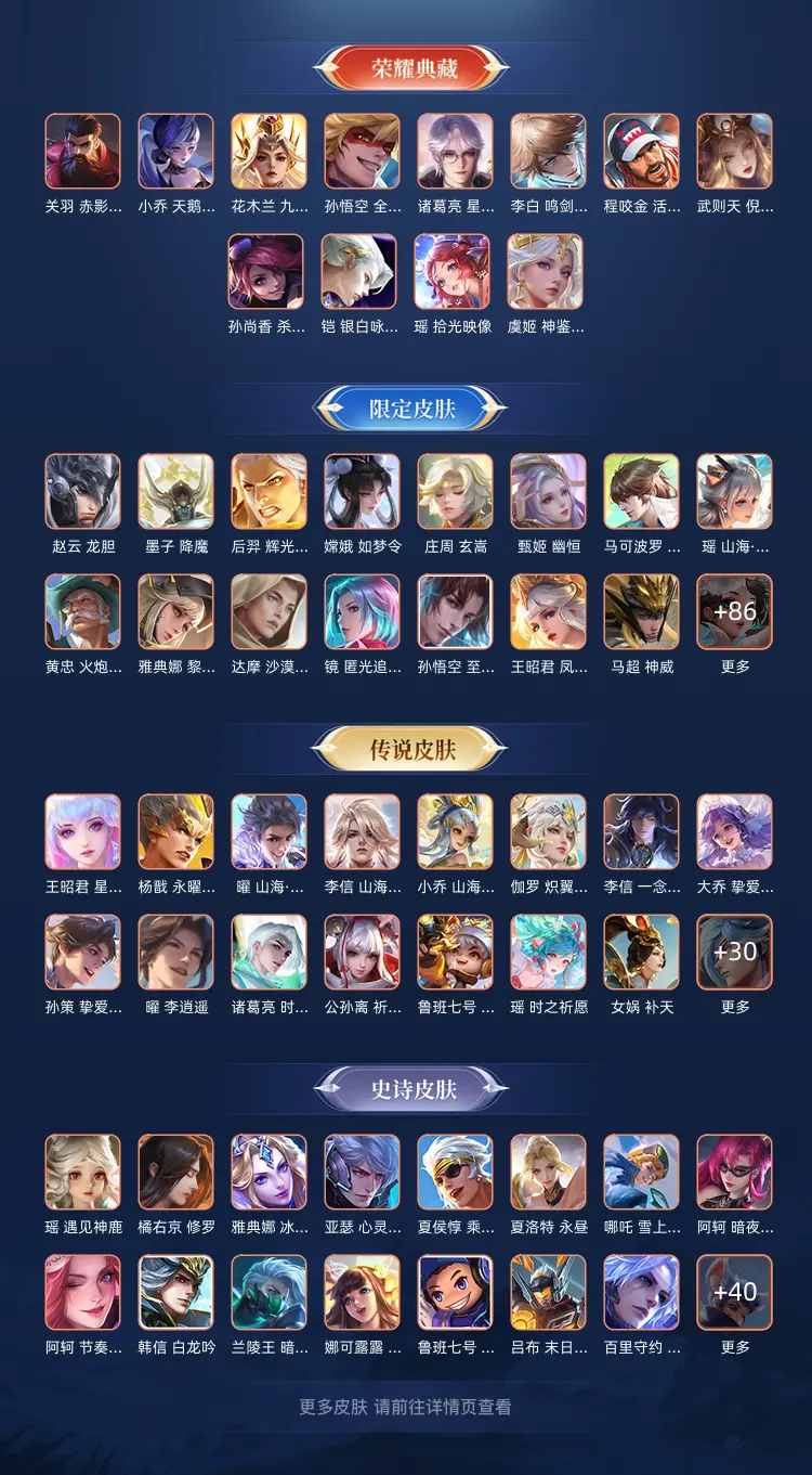 本游戏账号: V10无双贵族用户,基础段位:至尊星耀II,英雄多,皮肤多。典藏皮肤17个,感受典藏皮肤带来的优质体验快感,FMVP皮肤10个,尽情享受FMVP皮肤带来的主角光环, 私人所属英雄皮肤有:诸葛亮 星域神启||铠 银白咏叹调||孙尚香 杀手不太冷||鲁班七号 星空梦想||芈月 大秦宣太后||夏侯惇 无限飓风号||李白 鸣剑·曳影||武则天 倪克斯神谕||关羽 赤影疾锋||貂蝉 幻阙歌||程咬金 活力突击||韩信 弑枪猎影||花木兰 九霄神辉||孙悟空 全息碎影||虞姬 神鉴启示录||小乔 天鹅之梦||瑶 拾光映像,等等