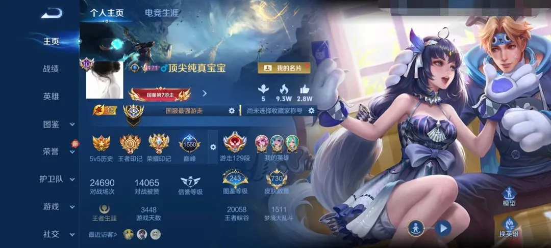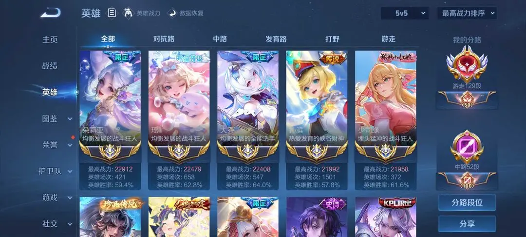 12月在榜国服129段游走❤️顶级漂亮女号✨历史10国服5个2.2w战力瑶朵莉亚