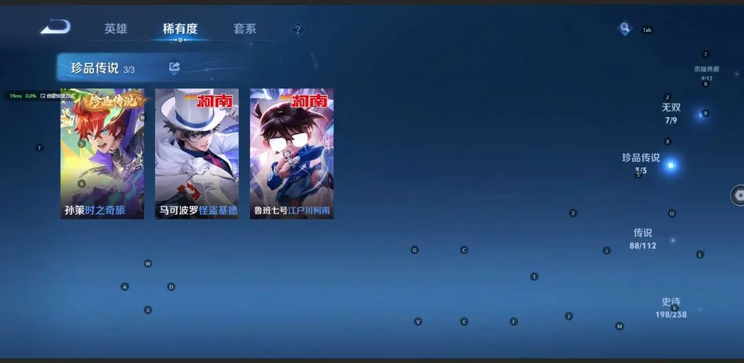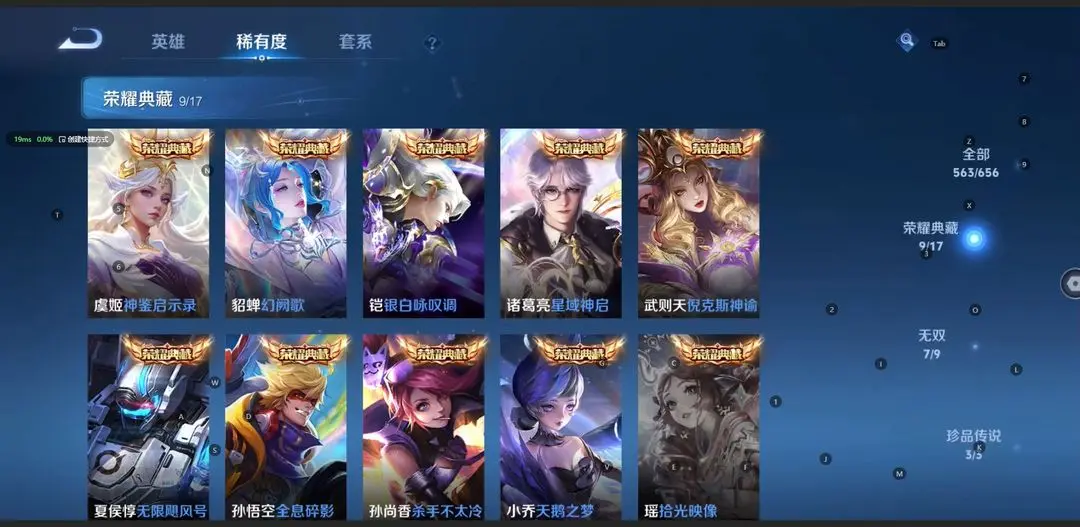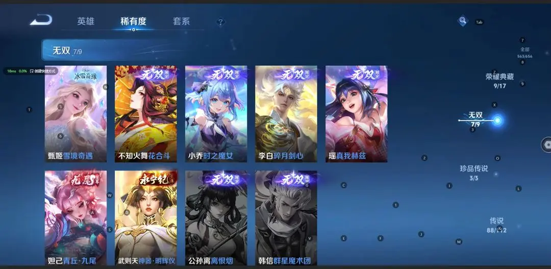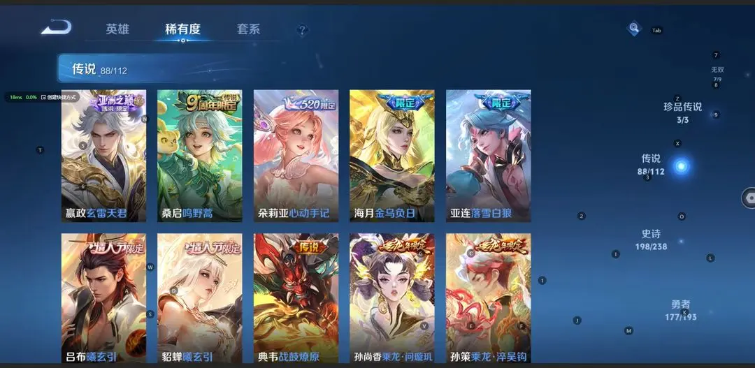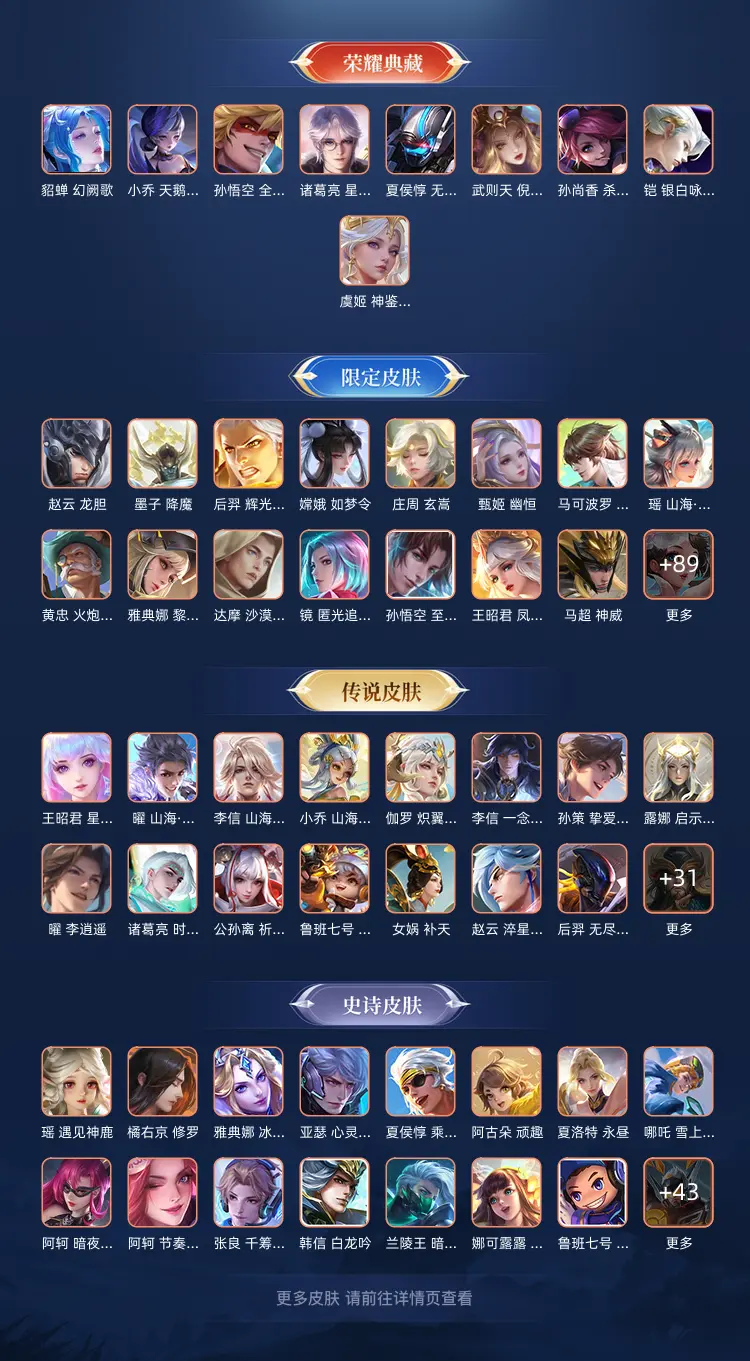 本游戏账号: V10无双贵族用户,基础段位:最强王者,英雄多,皮肤多。典藏皮肤9个,感受典藏皮肤带来的优质体验快感,FMVP皮肤10个,尽情享受FMVP皮肤带来的主角光环, 私人所属英雄皮肤有:诸葛亮 星域神启||铠 银白咏叹调||孙尚香 杀手不太冷||夏侯惇 无限飓风号||武则天 倪克斯神谕||貂蝉 幻阙歌||孙悟空 全息碎影||虞姬 神鉴启示录||小乔 天鹅之梦,等等
