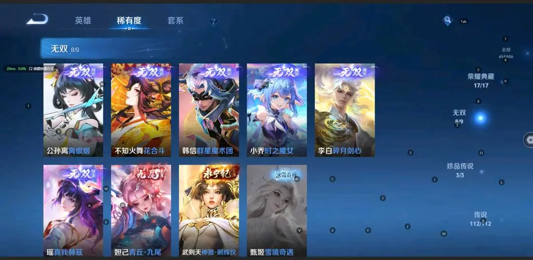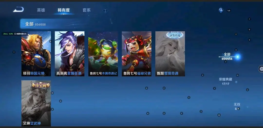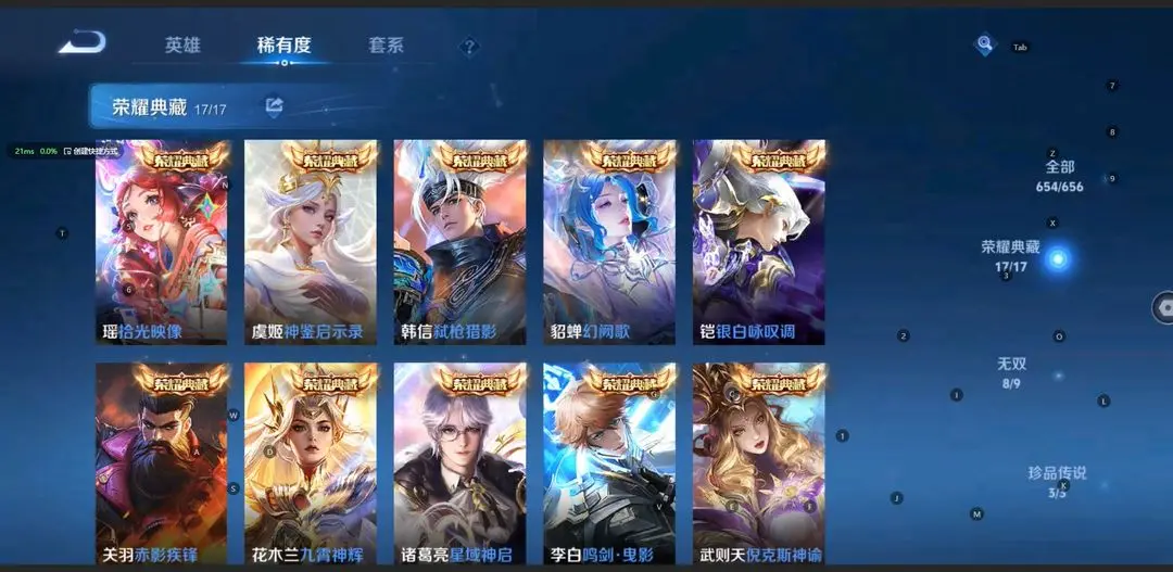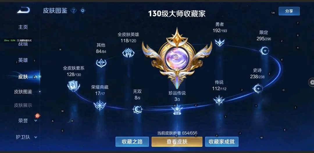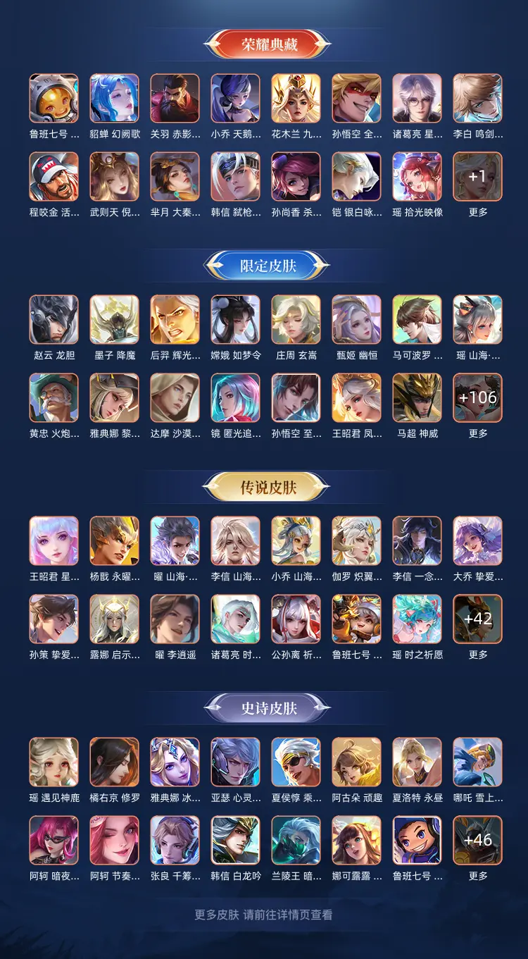 本游戏账号: V10无双贵族用户,基础段位:至尊星耀II,英雄多,皮肤多。典藏皮肤17个,感受典藏皮肤带来的优质体验快感,FMVP皮肤10个,尽情享受FMVP皮肤带来的主角光环, 私人所属英雄皮肤有:诸葛亮 星域神启||铠 银白咏叹调||孙尚香 杀手不太冷||鲁班七号 星空梦想||芈月 大秦宣太后||夏侯惇 无限飓风号||李白 鸣剑·曳影||武则天 倪克斯神谕||关羽 赤影疾锋||貂蝉 幻阙歌||程咬金 活力突击||韩信 弑枪猎影||花木兰 九霄神辉||孙悟空 全息碎影||虞姬 神鉴启示录||小乔 天鹅之梦||瑶 拾光映像,等等