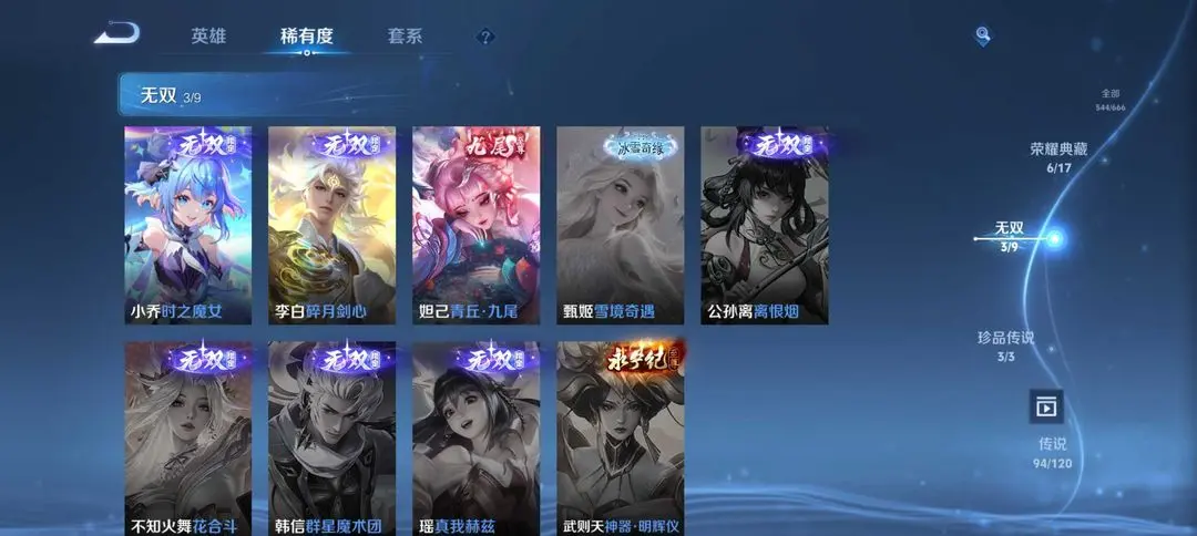 无双V10新皮多顶级账号三珍藏市级在榜大乔小红狼小兵8水3无双94传说8星传说