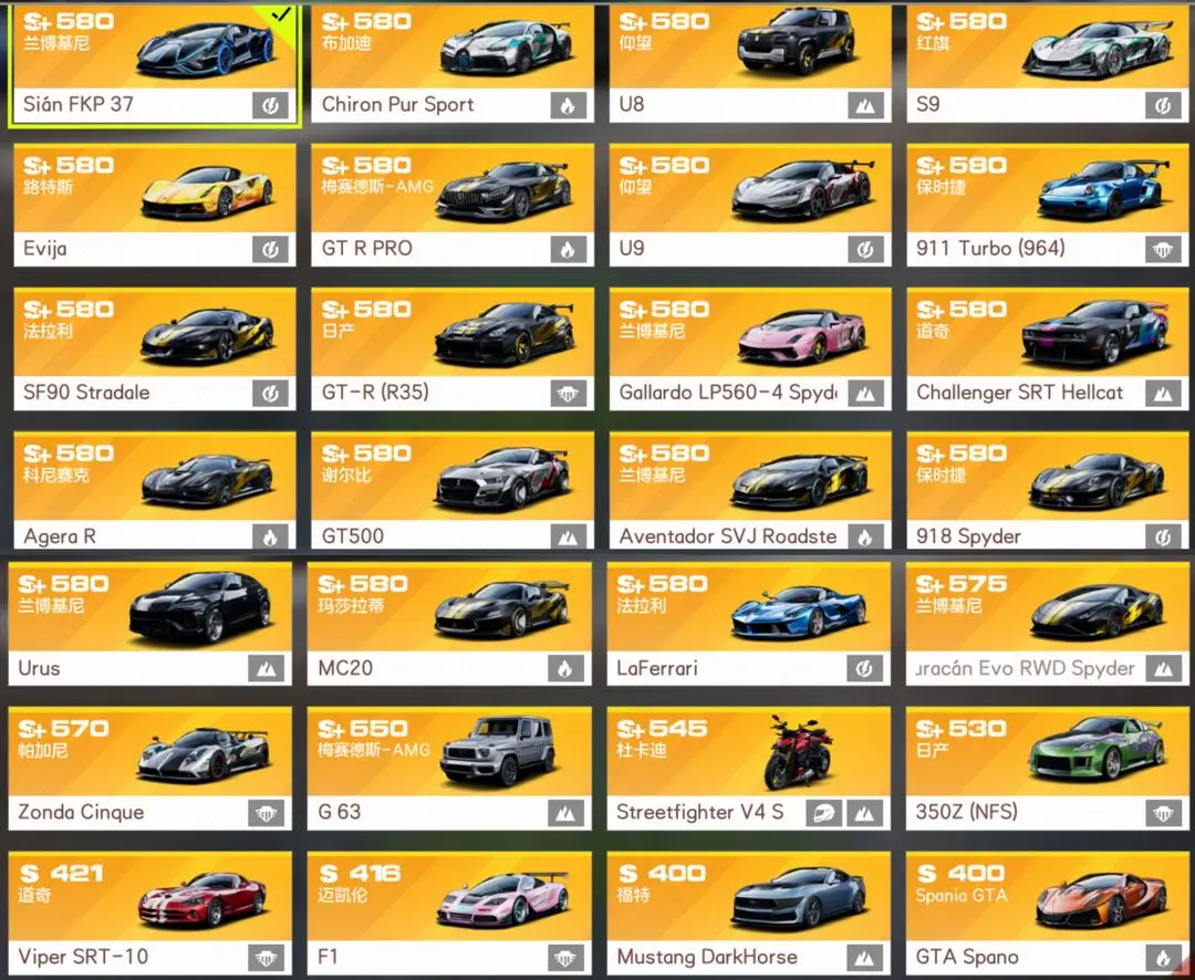 满改71金车 传奇涂装《街斗+数位电泳》✨满改殿堂兰博闪电SiAN附带专属套件。法拉利拉法、918、杜卡迪、追击神车红旗S9、最新运动组兰博飓风、最强摩托魔鬼杜卡迪、奔驰绿魔、挑战者地狱猫、仰望U8、GTA斯帕诺、盖拉多。