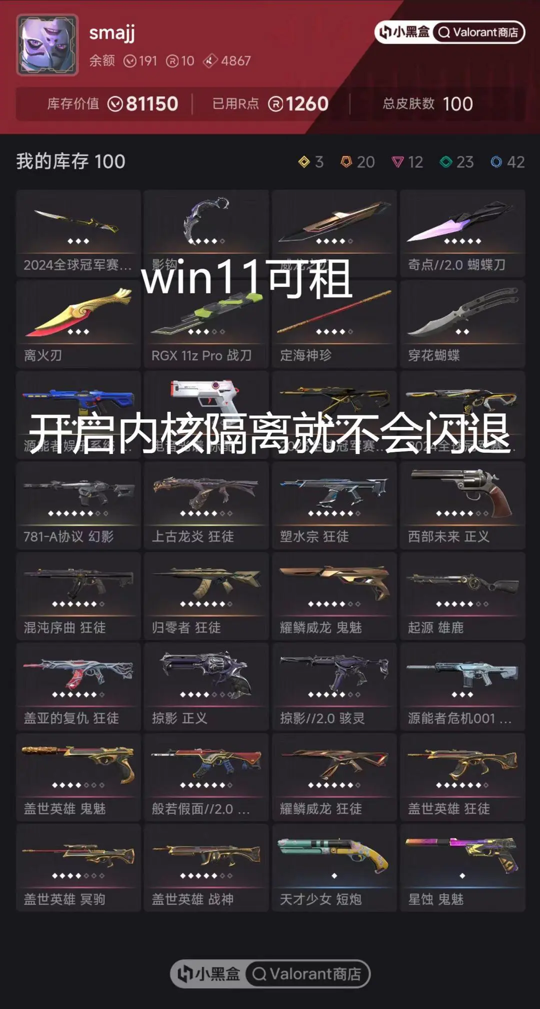 【win11可租】白银可排位10w库存⭐离火刃⭐24冠军套⭐23冠军ak⭐猴子套⭐威龙套⭐掠夺爪等