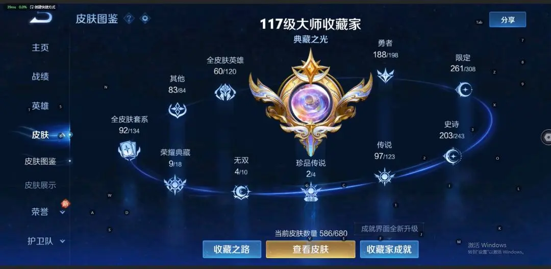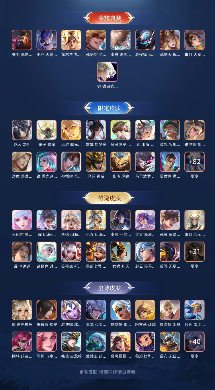 本游戏账号: V10用户,基础段位:最强王者,英雄多,皮肤多。典藏皮肤9个,感受典藏皮肤带来的优质体验快感,FMVP皮肤10个,尽情享受FMVP皮肤带来的主角光环, 私人所属英雄皮肤有:铠 银白咏叹调||芈月 大秦宣太后||夏侯惇 无限飓风号||李白 鸣剑·曳影||武则天 倪克斯神谕||关羽 赤影疾锋||花木兰 九霄神辉||孙悟空 全息碎影||小乔 天鹅之梦,等等