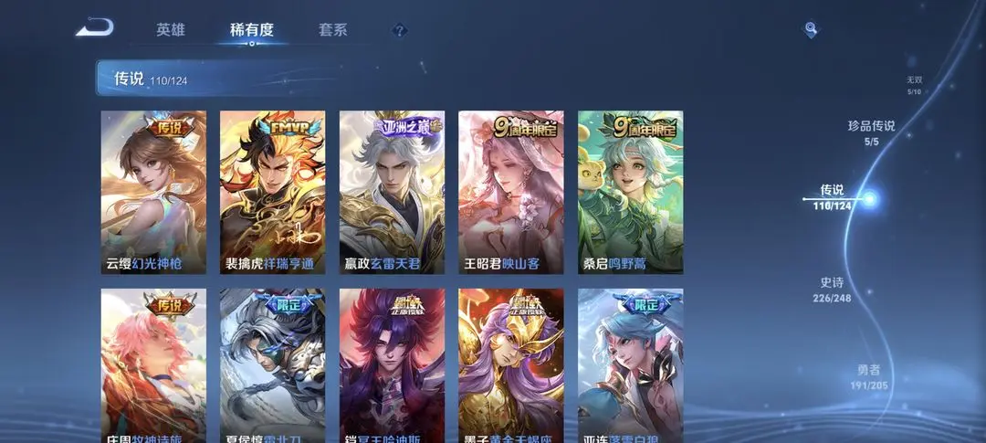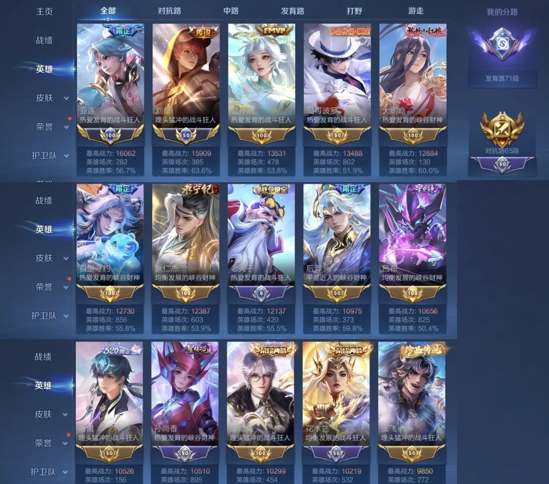 本游戏账号: V10用户,基础段位:最强王者,英雄多,皮肤多。典藏皮肤4个,感受典藏皮肤带来的优质体验快感,FMVP皮肤9个,尽情享受FMVP皮肤带来的主角光环, 私人所属英雄皮肤有:孙尚香 杀手不太冷||李白 鸣剑·曳影||花木兰 九霄神辉||虞姬 神鉴启示录诸葛亮 鹤羽星尊||大乔 时之奇旅||梦奇 胖达荣荣||公孙离 祈雪灵祝||公孙离 记忆之芯||孙尚香 乘龙·问璇玑||孙尚香 末日机甲||鲁班七号 时之奇旅||鲁班七号 寅虎·瑞焰||孙策 乘龙·淬吴钩||孙策 末日机甲||亚连 落雪白狼||孙膑 小动物乐团||马超 琥珀纪元||吕布 曦玄引||吕布 遇见神鼓||周瑜 音你心动||曜 李逍遥||典韦 战鼓燎原||澜 愿照·九州拓||澜 电玩·雷克斯||宫本武藏 惊梅引||宫本武藏 地狱之眼||李白 诗剑行||马可波罗 深海之息||马可波罗 妄想实况||狄仁杰 夜礼服假面||桑启 鸣野蒿||云缨 幻光神枪||云缨 鹤归松栖||关羽 武圣||貂蝉 曦玄引||貂蝉 仲夏夜之梦|