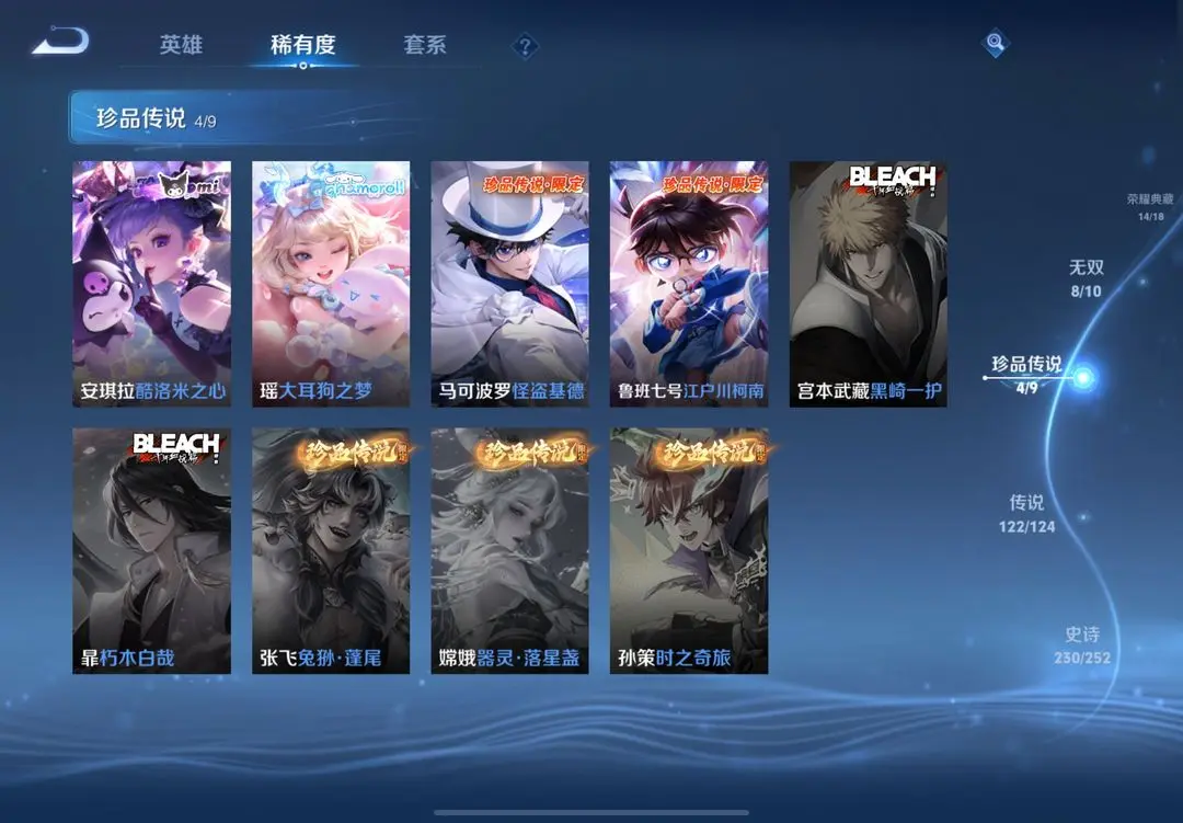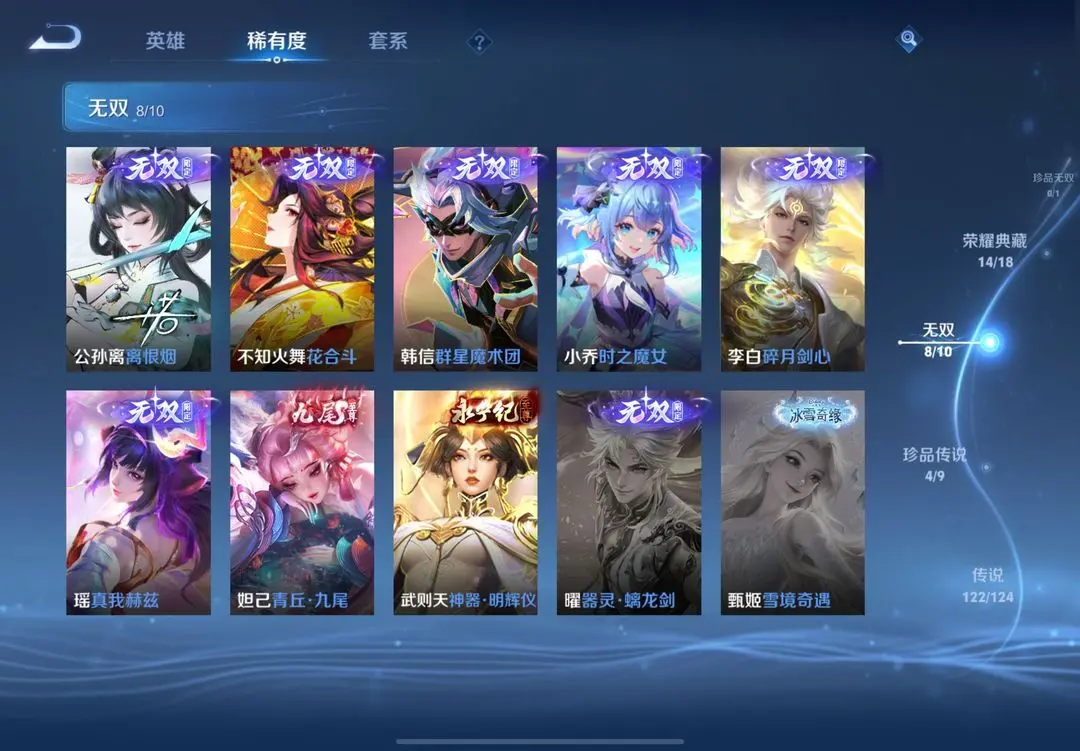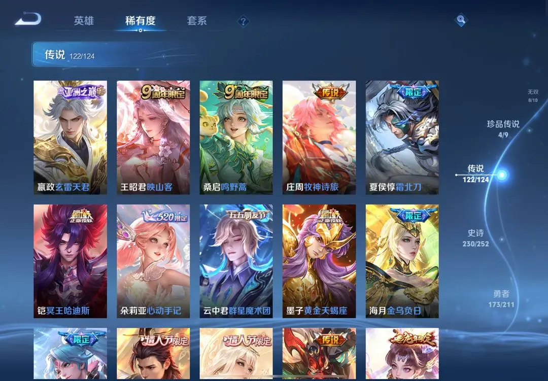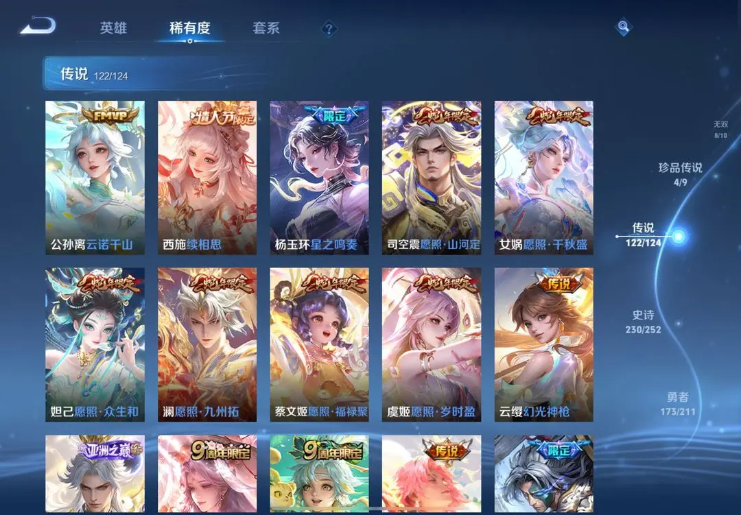 本游戏账号: V10用户,基础段位:非凡王者,英雄多,皮肤多。典藏皮肤6个,感受典藏皮肤带来的优质体验快感,FMVP皮肤8个,尽情享受FMVP皮肤带来的主角光环, 私人所属英雄皮肤有:孙悟空 全息碎影||李白 鸣剑·曳影||韩信 弑枪猎影||花木兰 九霄神辉||铠 银白咏叹调||貂蝉 幻阙歌马可波罗 怪盗基德||马可波罗 妄想实况||裴擒虎 寅虎·赤拳||曜 山海·苍雷引||诸葛亮 时雨天司||澜 愿照·九州拓||澜 电玩·雷克斯||司空震 愿照·山河定||孙悟空 齐天大圣||孙悟空 地狱火||李白 诗剑行||李白 凤求凰||吕布 天魔缭乱||孙尚香 末日机甲||孙策 时之奇旅||露娜 霜月吟||兰陵王 默契交锋||公孙离 祈雪灵祝||宫本武藏 惊梅引||宫本武藏 地狱之眼||艾琳 觅芳踪||杨戬 永曜之星||花木兰 燃星之曲||达摩 黄金狮子座||鲁班七号 江户川柯南||后羿 黄金射手座||云中君 群星魔术团||典韦 战鼓燎原||铠 绛天战甲||赵云 淬星耀世||小乔 音你心动