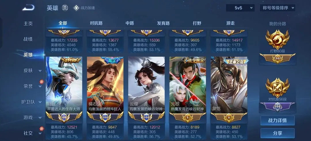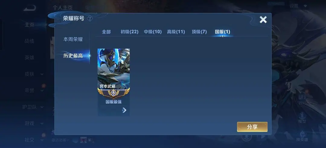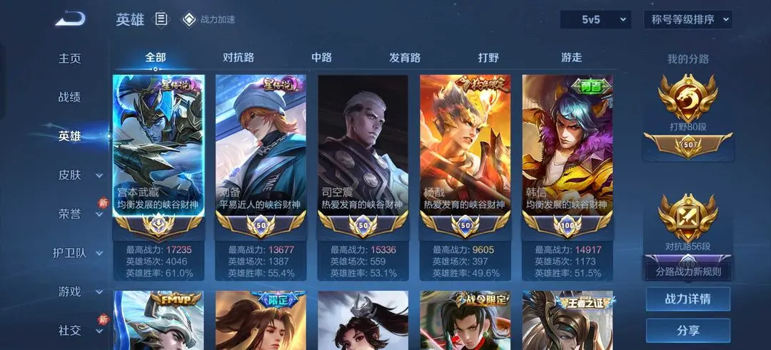 80段在榜省标打野✨大国服宫本武藏✨国标马超✨国标韩信杨戬✨1大国7小国标✨巅峰万强