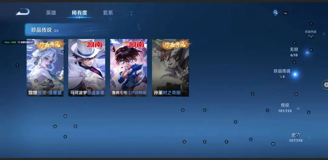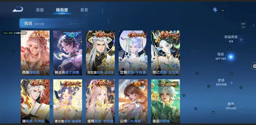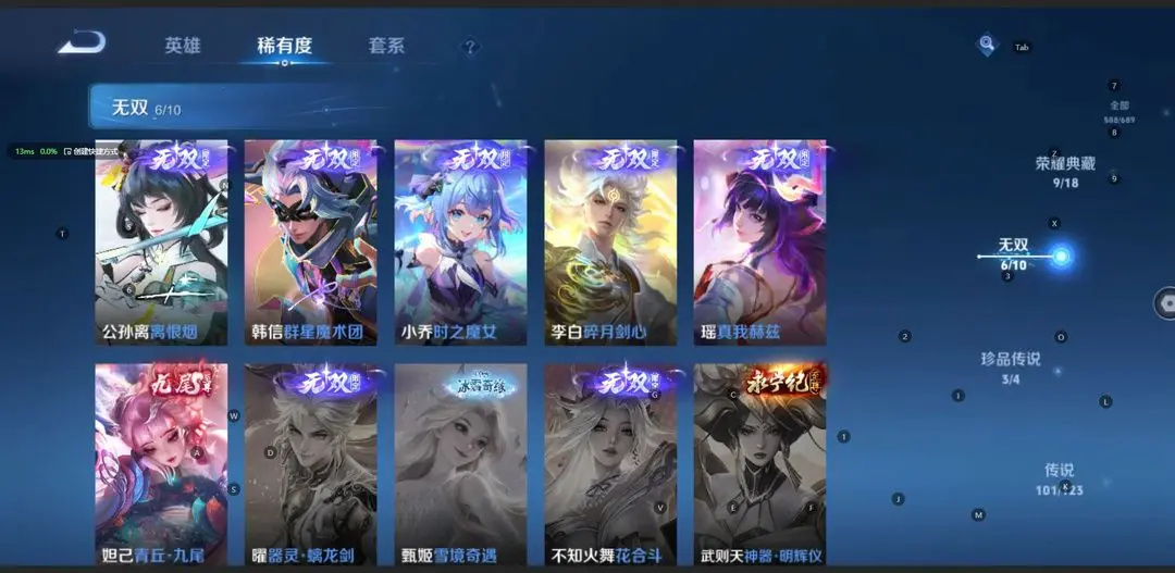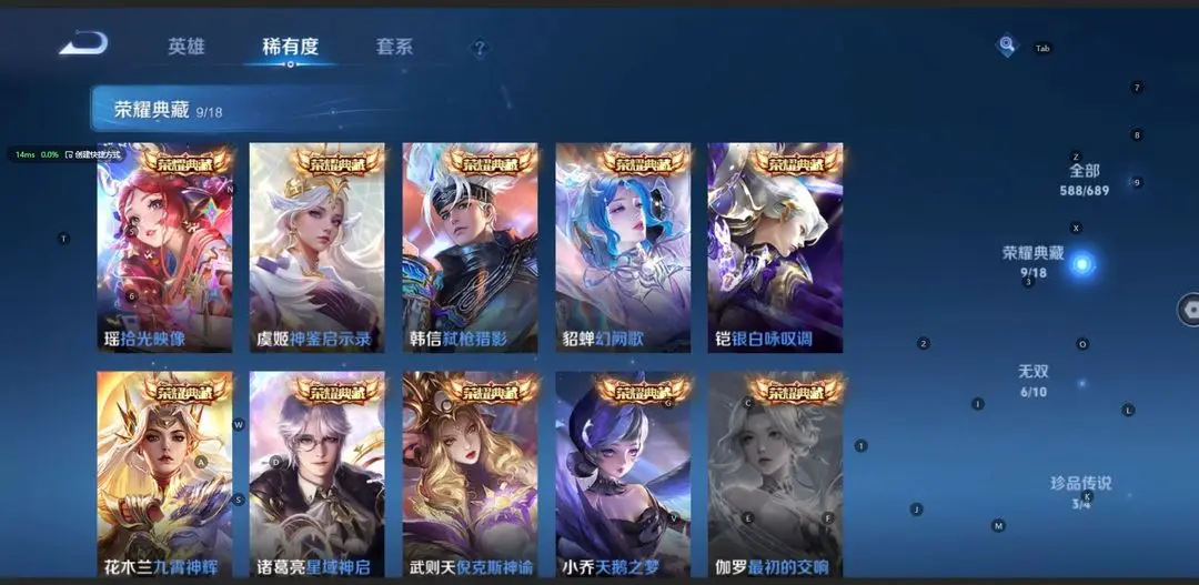 本游戏账号: V10无双贵族用户,基础段位:至尊星耀II,英雄多,皮肤多。典藏皮肤9个,感受典藏皮肤带来的优质体验快感,FMVP皮肤9个,尽情享受FMVP皮肤带来的主角光环, 私人所属英雄皮肤有:花木兰 九霄神辉||小乔 天鹅之梦||韩信 弑枪猎影||诸葛亮 星域神启||武则天 倪克斯神谕||瑶 拾光映像||虞姬 神鉴启示录||貂蝉 幻阙歌||铠 银白咏叹调,等等