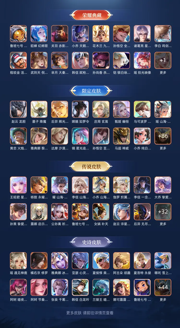 本游戏账号: ,基础段位:永恒钻石II,英雄多,皮肤多。典藏皮肤18个,感受典藏皮肤带来的优质体验快感,FMVP皮肤11个,尽情享受FMVP皮肤带来的主角光环, 私人所属英雄皮肤有:伽罗 最初的交响||瑶 拾光映像||孙尚香 杀手不太冷||鲁班七号 星空梦想||虞姬 神鉴启示录||韩信 弑枪猎影||程咬金 活力突击||铠 银白咏叹调||关羽 赤影疾锋||花木兰 九霄神辉||武则天 倪克斯神谕||诸葛亮 星域神启||夏侯惇 无限飓风号||李白 鸣剑·曳影||小乔 天鹅之梦||孙悟空 全息碎影||芈月 大秦宣太后||貂蝉 幻阙歌,等等