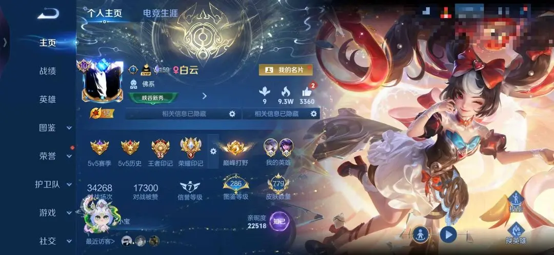本游戏账号: V10用户,基础段位:至尊星耀V,英雄多,皮肤多。典藏皮肤18个,感受典藏皮肤带来的优质体验快感,FMVP皮肤12个,尽情享受FMVP皮肤带来的主角光环, 私
