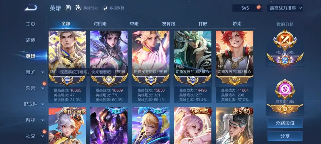本游戏账号: V10无双贵族用户,基础段位:至尊星耀V,英雄多,皮肤多。典藏皮肤18个,感受典藏皮肤带来的优质体验快感,FMVP皮肤11个,尽情享受FMVP皮肤带来的主角光环, 私人所属英雄皮肤有:伽