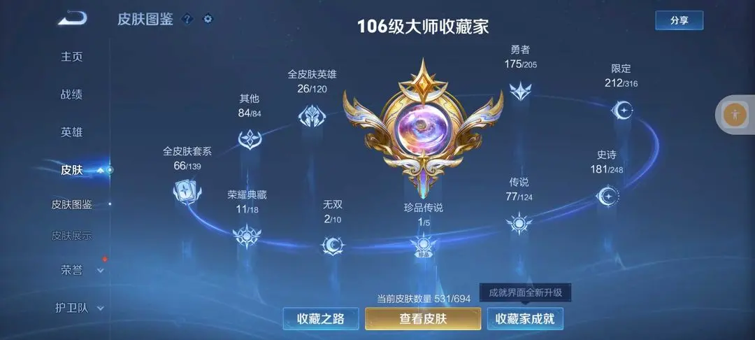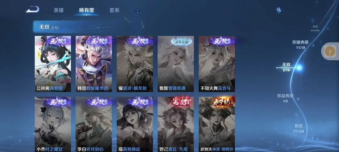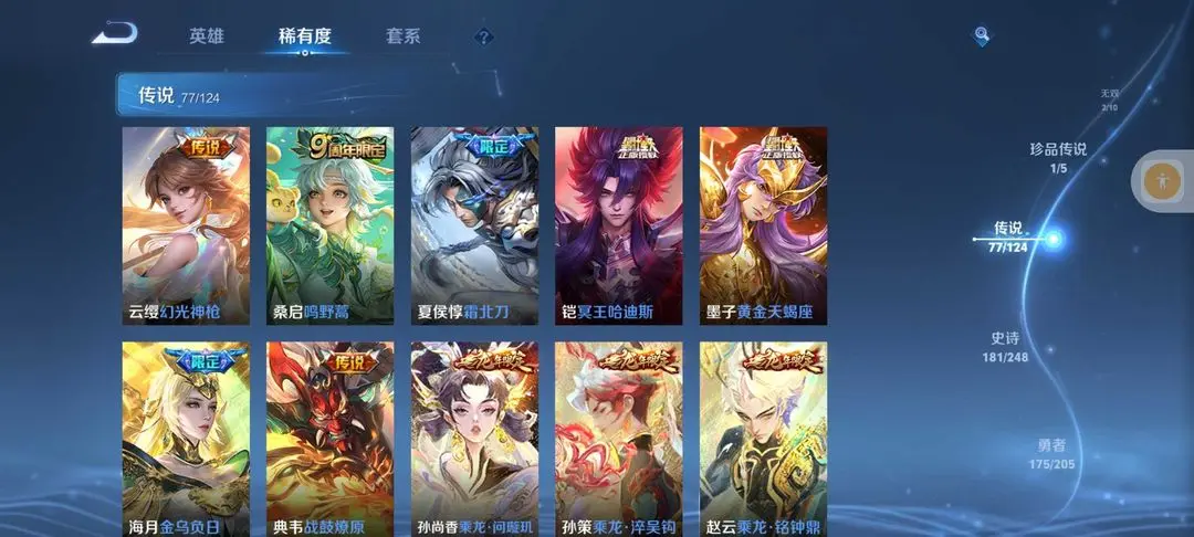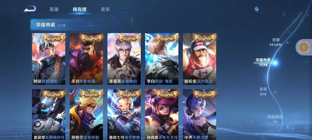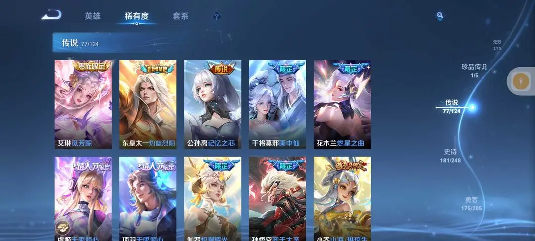 本游戏账号: V10用户,基础段位:至尊星耀V,英雄多,皮肤多。典藏皮肤11个,感受典藏皮肤带来的优质体验快感,FMVP皮肤8个,尽情享受FMVP皮肤带来的主角光环, 私人所属英雄皮肤有:韩信 弑枪猎影||关羽 赤影疾锋||芈月 大秦宣太后||诸葛亮 星域神启||程咬金 活力突击||鲁班七号 星空梦想||孙尚香 杀手不太冷||李白 鸣剑·曳影||小乔 天鹅之梦||夏侯惇 无限飓风号||孙悟空 全息碎影,等等