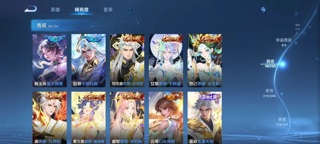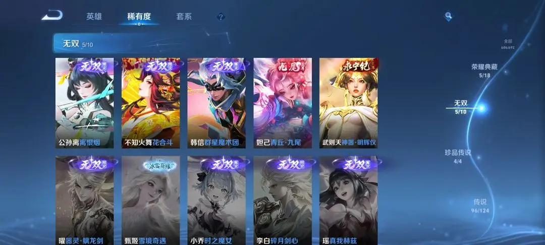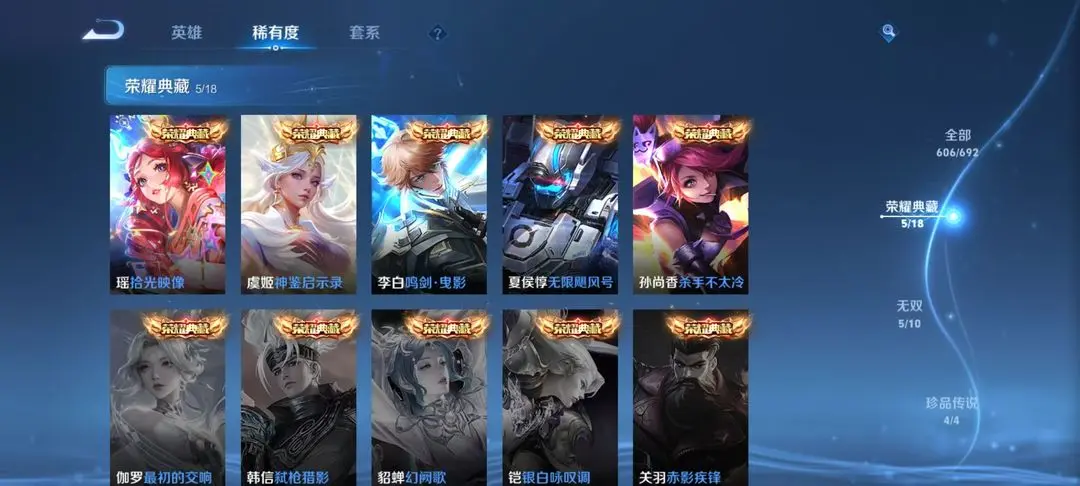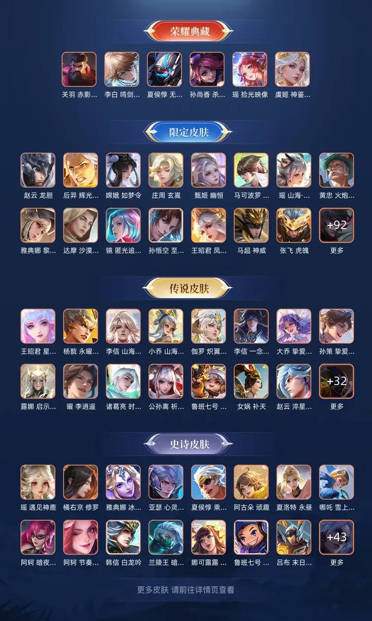 本游戏账号: V10无双贵族用户,基础段位:至尊星耀III,英雄多,皮肤多。典藏皮肤5个,感受典藏皮肤带来的优质体验快感,FMVP皮肤6个,尽情享受FMVP皮肤带来的主角光环, 私人所属英雄皮肤有:瑶 拾光映像||孙尚香 杀手不太冷||虞姬 神鉴启示录||夏侯惇 无限飓风号||李白 鸣剑·曳影马可波罗 怪盗基德||马可波罗 妄想实况||马可波罗 深海之息||公孙离 祈雪灵祝||庄周 牧神诗旅||蔡文姬 愿照·福禄聚||狄仁杰 夜礼服假面||狄仁杰 神器·狴犴令||狄仁杰 超时空战士||孙悟空 齐天大圣||孙悟空 零号·赤焰||貂蝉 曦玄引||貂蝉 遇见胡旋||貂蝉 仲夏夜之梦||后羿 千劫归真||后羿 无尽星芒||后羿 黄金射手座||杨玉环 星之鸣奏||王昭君 映山客||王昭君 星穹之声||王昭君 永恒水手月亮||王昭君 乞巧织情||墨子 黄金天蝎座||孙尚香 乘龙·问璇玑||孙尚香 异界灵契||孙尚香 末日机甲||李信 山海·炽霜斩||李信 一念神魔||艾琳 觅芳踪||虞姬 愿
