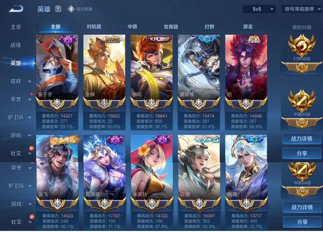 103段在榜百段打野⚡24国标⚡10大国标14小国⚡大国服哪吒✨大国服凯夏侯惇⚡历史巅峰万强