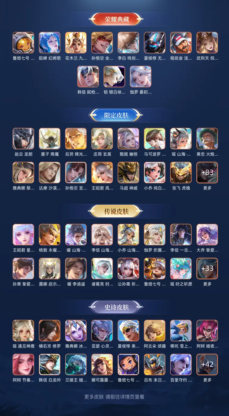 本游戏账号: V10用户,基础段位:至尊星耀I,英雄多,皮肤多。典藏皮肤18个,感受典藏皮肤带来的优质体验快感,FMVP皮肤12个,尽情享受FMVP皮肤带来的主角光环, 私人所属英雄皮肤有:伽罗 最初的交响||瑶 拾光映像||虞姬 神鉴启示录||程咬金 活力突击||韩信 弑枪猎影||鲁班七号 星空梦想||孙悟空 全息碎影||孙尚香 杀手不太冷||诸葛亮 星域神启||铠 银白咏叹调||貂蝉