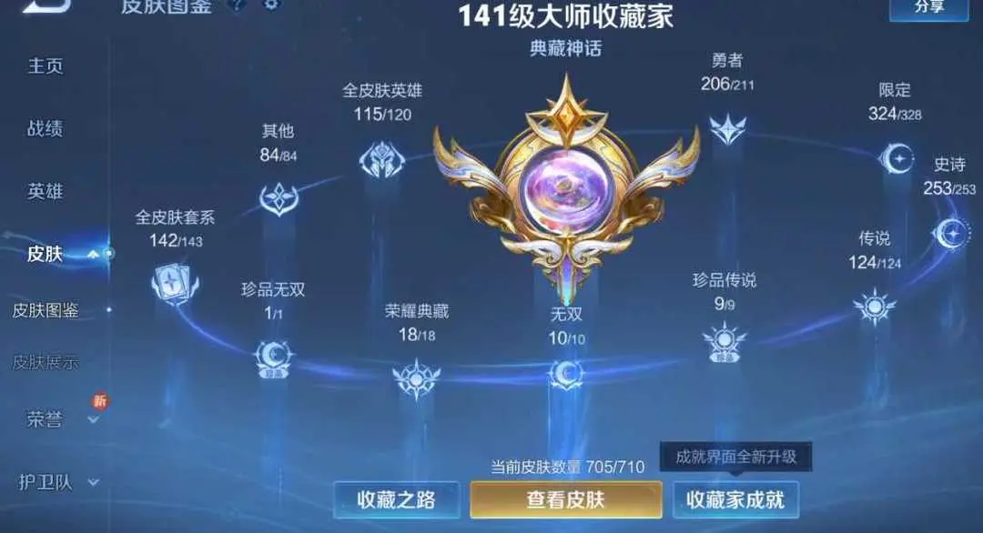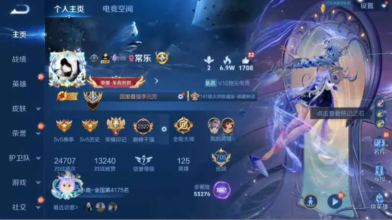 本游戏账号: V10无双贵族用户,基础段位:至尊星耀I,英雄多,皮肤多。典藏皮肤18个,感受典藏皮肤带来的优质体验快感,FMVP皮肤12个,尽情享受FMVP皮肤带来的主角光环, 私人所属英雄皮肤有:伽罗 最初的交响||瑶 拾光映像||虞姬 神鉴启示录||韩信 弑枪猎影||貂蝉 幻阙歌||